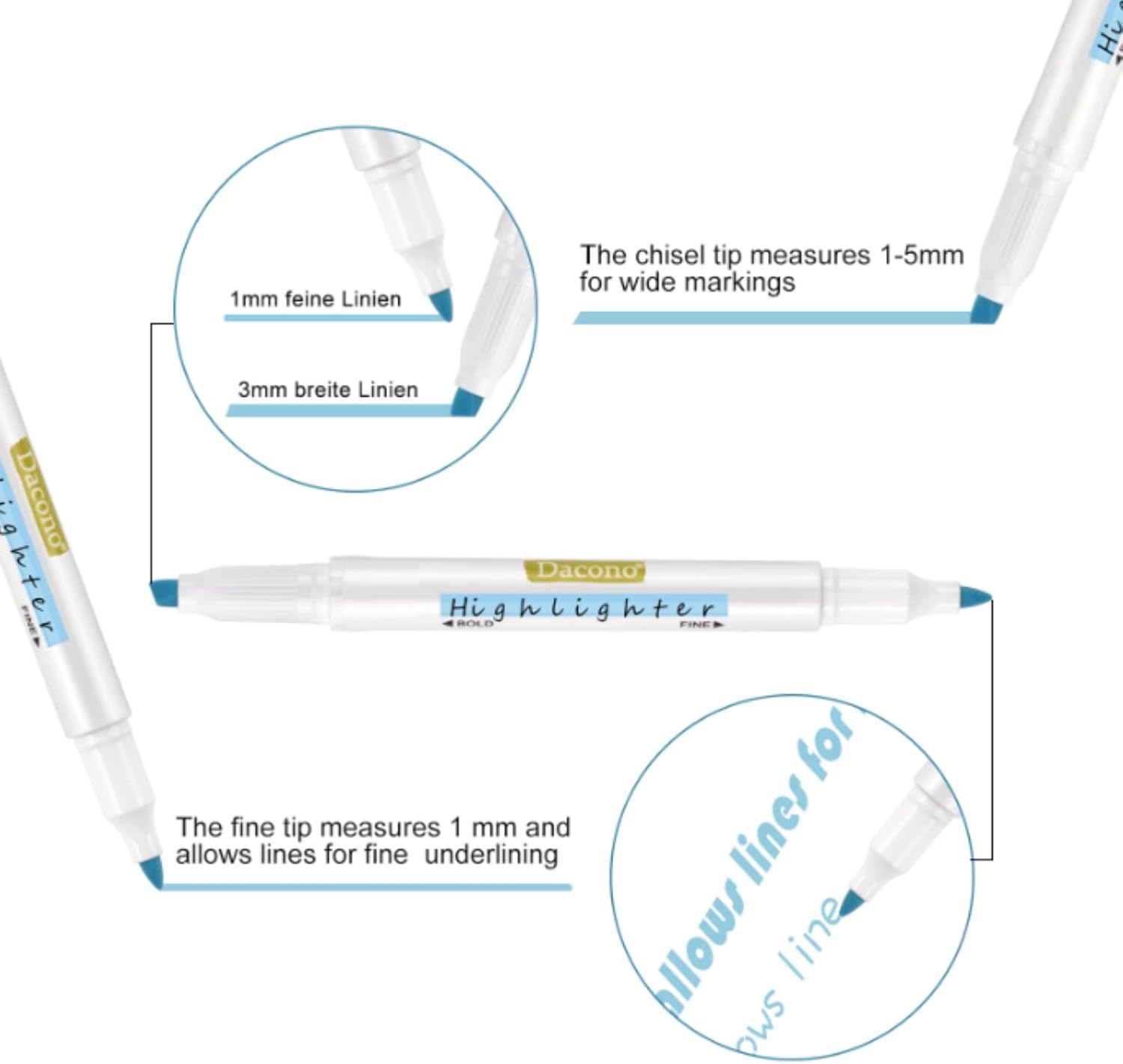 - 【Double Ended Design】:The dual tip mild highlighters with broad and fine twin tips for both highlighting and underlining. You can have flexible writing width. A thicker chisel point (4mm) makes it easy to mark the entire word, and the fine underlining (1mm) is very suitable for drawing lines.