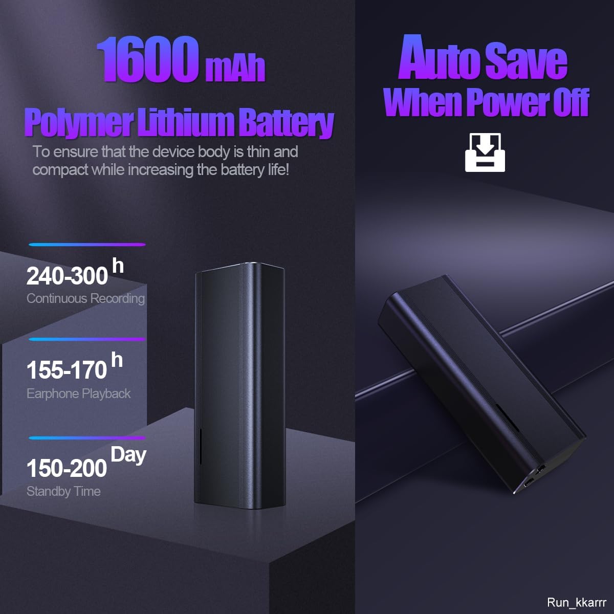 - ăLARGE CAPACITYă This voice activated recorder supports 128GB of memory which is insert in the device can store 1536H recording file at 192KBPS. And the built-in high-capacity battery can support 240 hours of continuous recording or 160 hours of headphone continuous playback. â¤ď¸Because of the large memory, the computer recognition is relatively slow, please wait patientlyâ¤ď¸