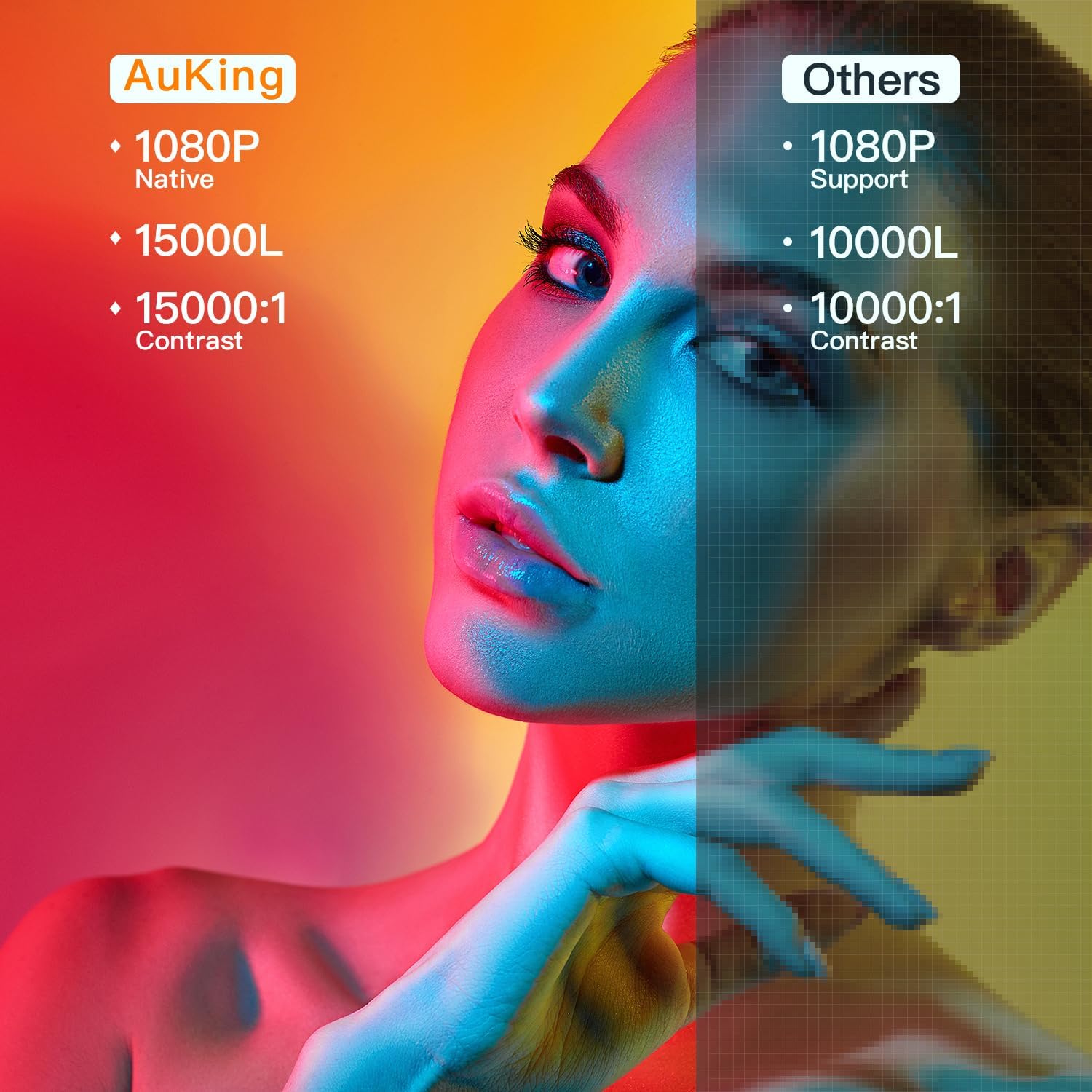 - [Native 1080P Supports 4K & 15000 L & Rich Colors] With native 1080P resolution, 480 ANSI brightness, 15000:1 contrast, AuKing 1080P projector is brighter 3 times than other native projectors. Mini projector adopted the latest NTSC color technology and the cutting-edge image edge processing algorithm, our 4K projector ensures every details on the screen is accurately restored to bring you a brilliant visual feast. Besides, a tripod and screen will be handy for your outdoor movie night