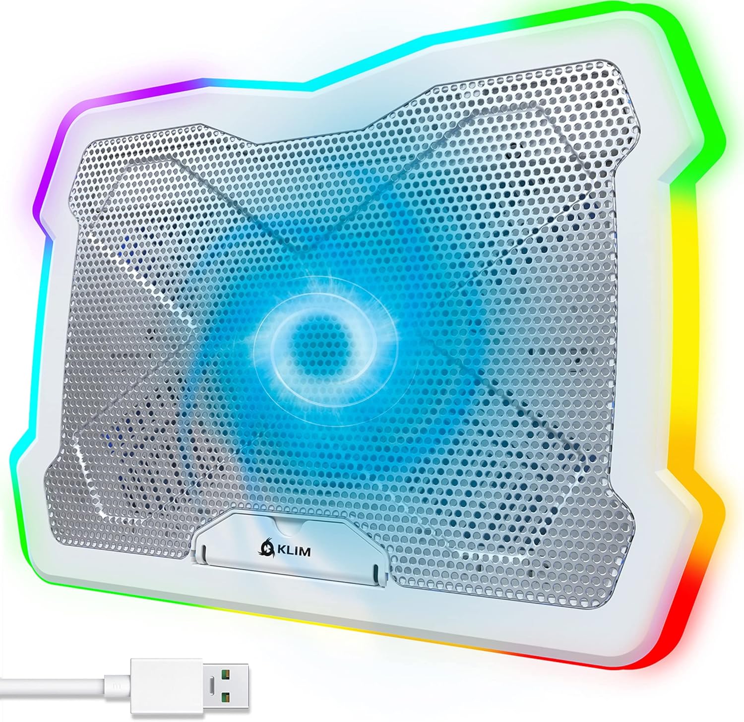 KLIM Ultimate + RGB Laptop Cooling Pad with LED Rim + New + Gaming Laptop Cooler + USB Powered Fan + Very Stable and Silent Laptop Stand + Compatible up to 17" + PC Mac PS5 PS4 Xbox One - White