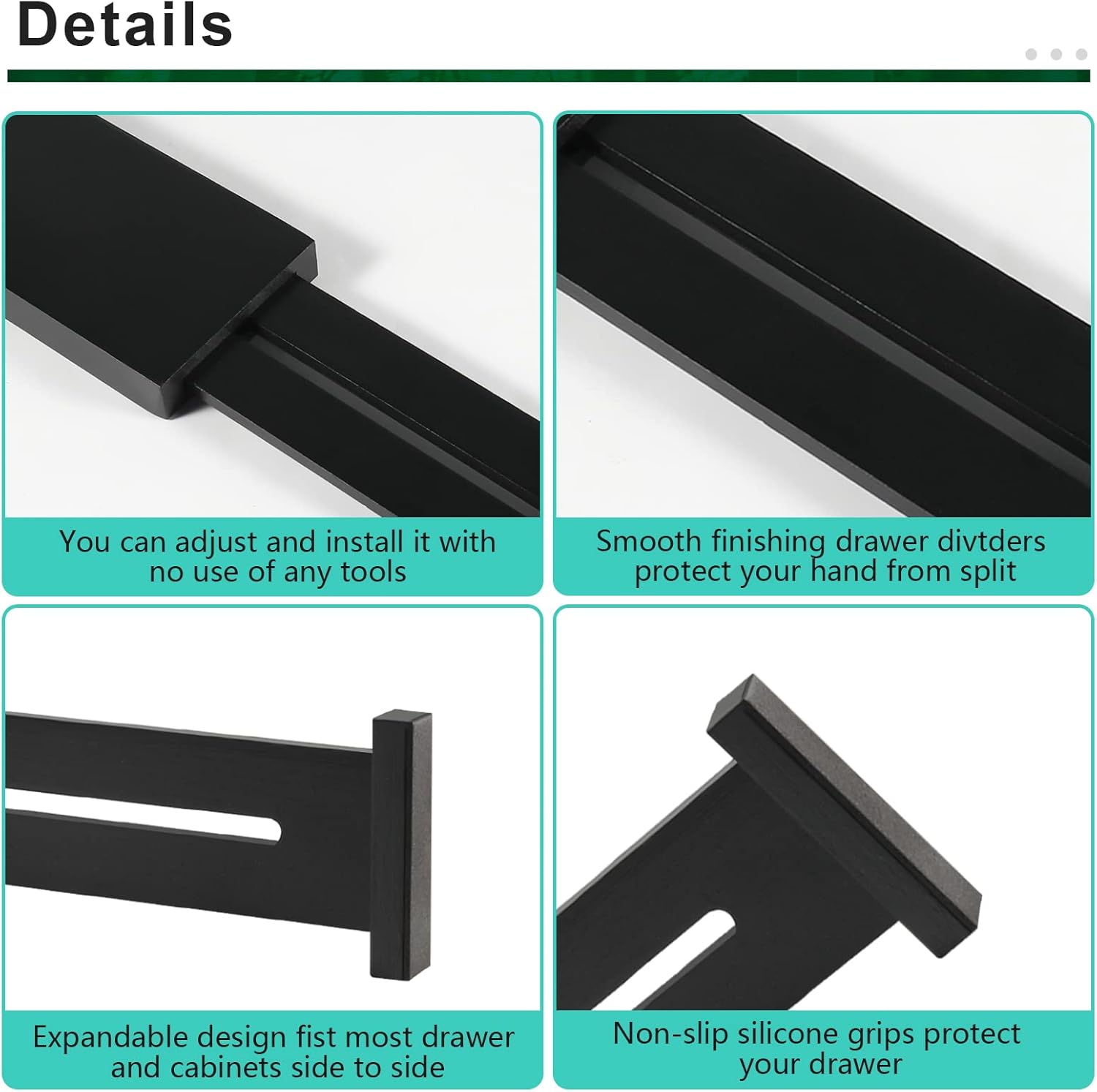 4 Pack Bamboo Drawer Dividers, Adjustable Length from 12 Inch to 17 Inch, Expandable Kitchen Drawer Organizer, Drawer Organization Separators for Clothes, Kitchen, Bedroom, Dresser, Office (Black)
