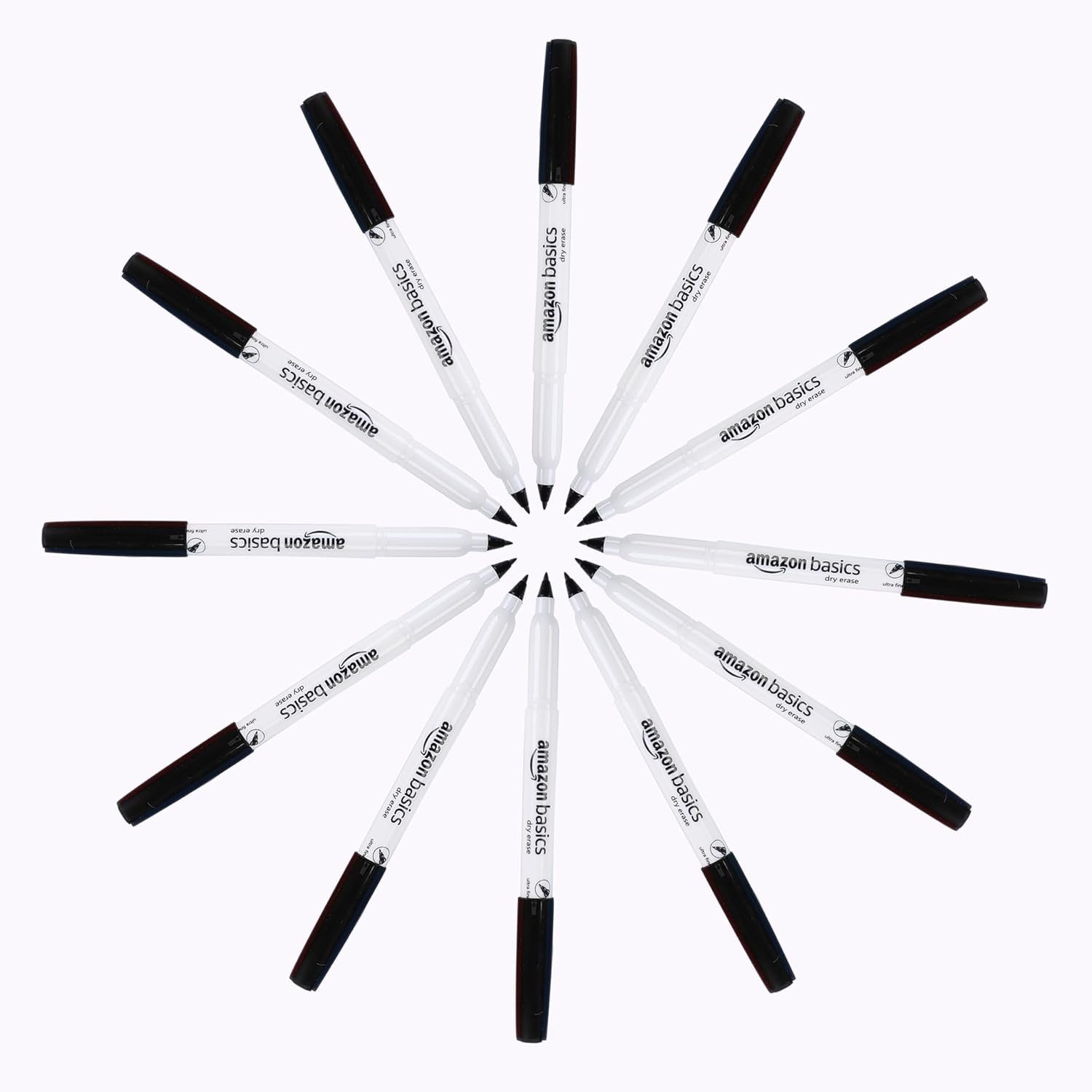 Amazon Basics Low Odor Ultra Fine Tip Dry Erase White Board Markers, Black, 12-Pack