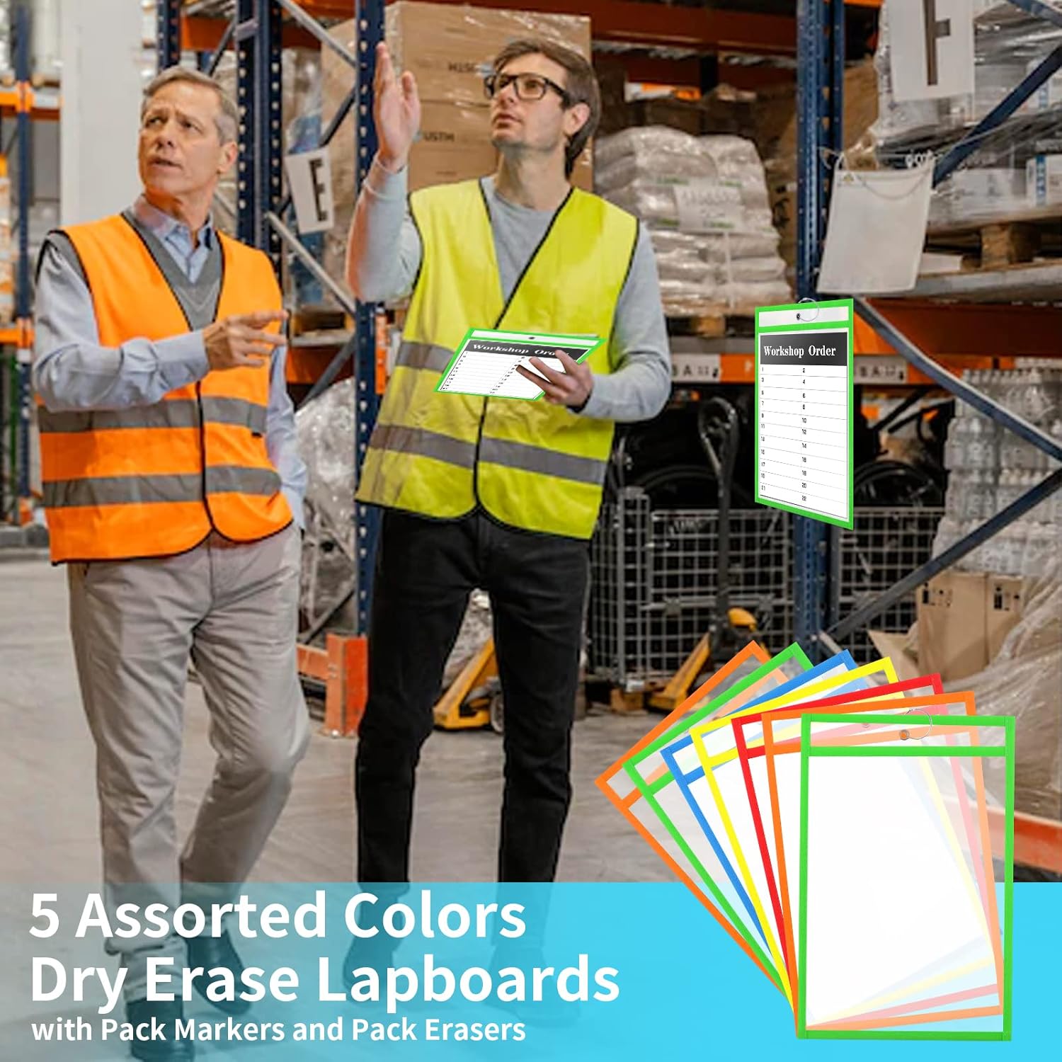 - 1. Premium Material: Our dry erase pockets are made of high quality PVC material and non-woven fabric with fine stitching around the edges, durable, waterproof and highly transparent to provide maximum protection for storing documents in harsh industrial environments.