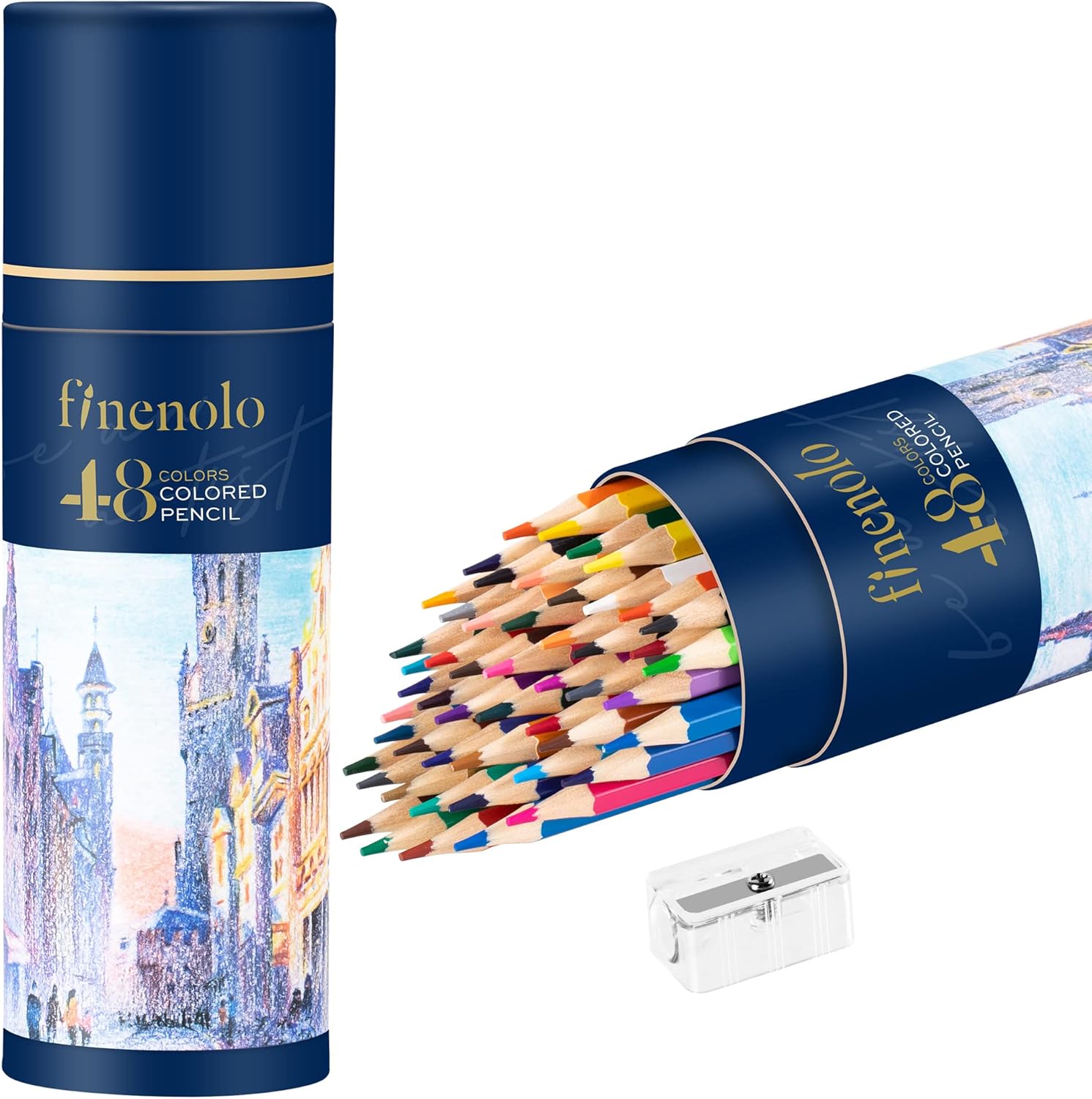 - What You Get -- 48 colored pencils + 1 eco-friendly pencil tube + sharpener. Convenient to storing and easy to find the color you are looking for. Built-in sharpener allows you to sharpen color pencils anytime.