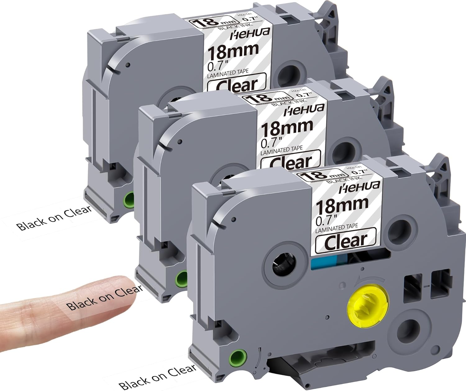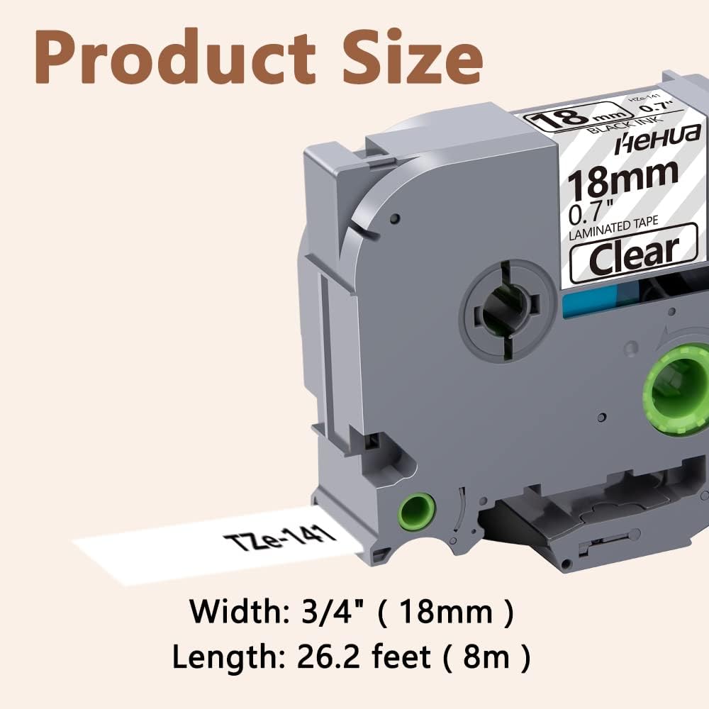 Hehua 18mm 0.7 Laminated Clear Label Tape Compatible for Brother Clear Label Maker Tape TZe-141 TZe141 TZ-141 TZ141 for P Touch PT D400 D450 D600 D610 P710BT, 3/4'' x 26.2ft Black on Clear, 3 Pack