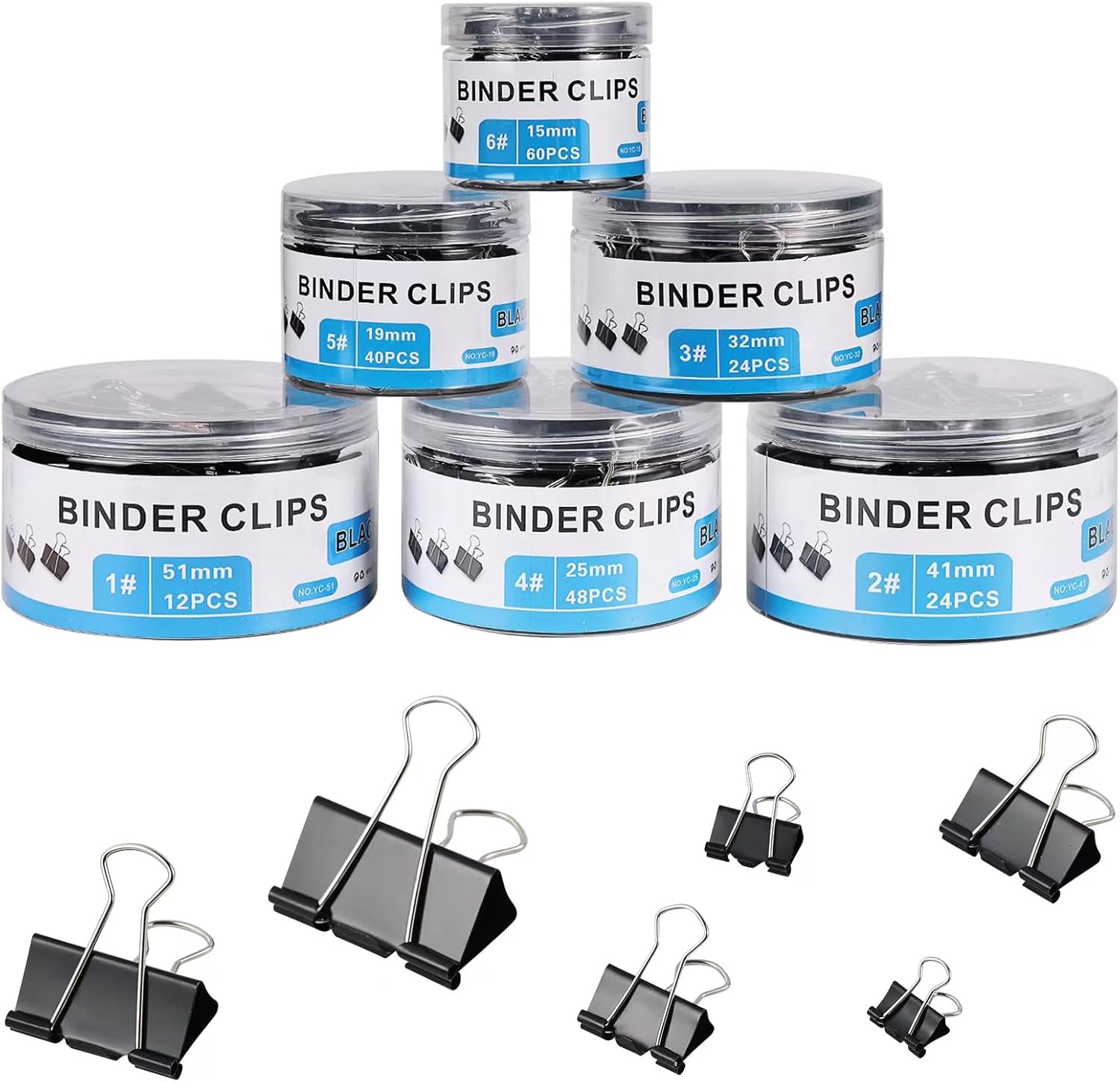 - WHAT YOU GET: 2 inch x 12 pcs, 1.6 inch x 24 pcs, 1.26 inch x 24 pcs, 0.98 inch x 48 pcs, 0.75 inch x 40 pcs, 0.6 inch x 60 pcs, assorted size total 208 pcs binder clips kit can meet your different using needs. You will also get a 100% satisfaction guarantee and after-sales service. Any questions about the product or packaging quality, please contact us for a satisfactory reply.