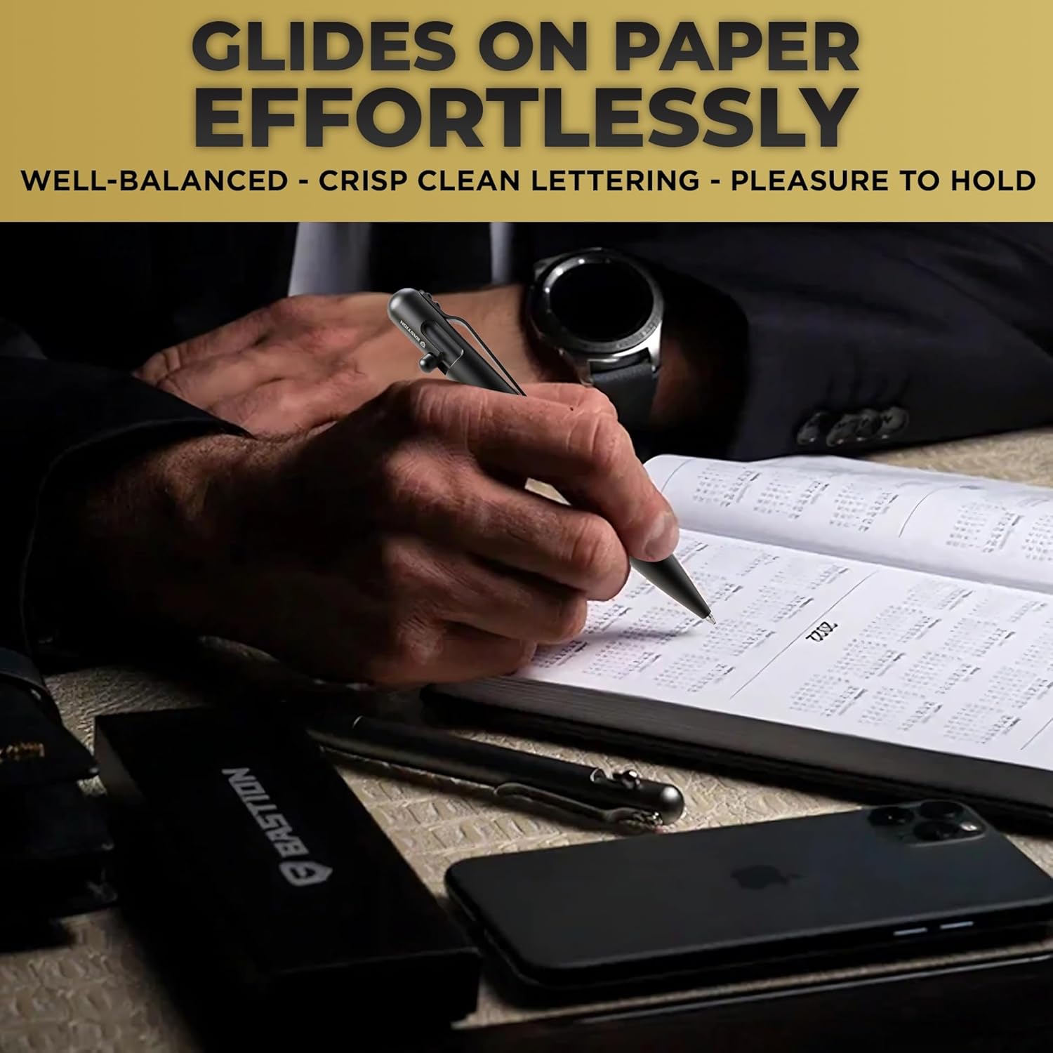 BASTION® Luxury Bolt Action Pen, Durable Professional Ballpoint Pen with Fine Tip, EDC Tactical Pen Ink Refillable Pen - Zirconium Black