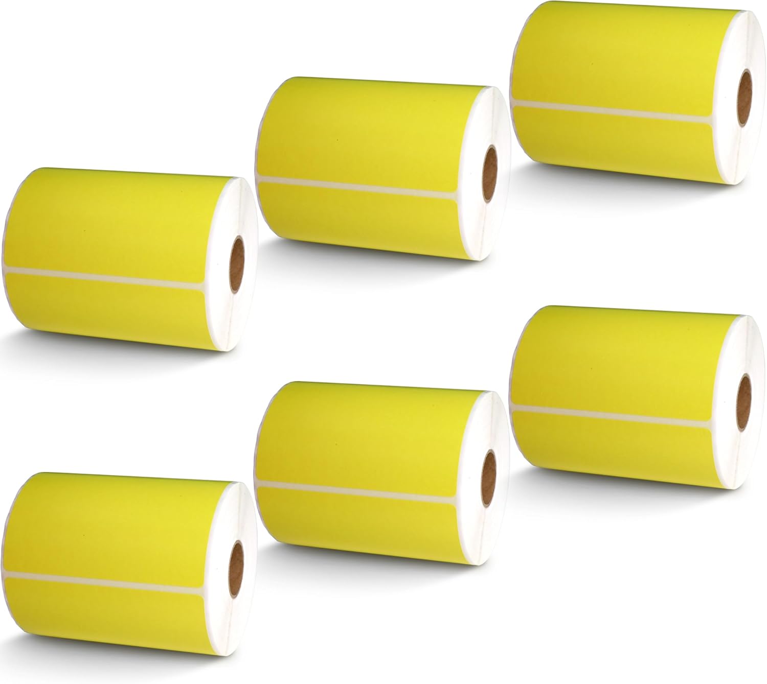 BETCKEY - 4" x 3" Shipping & Multipurpose Labels Compatible with Zebra & Rollo Label Printer,Premium Adhesive & Perforated[Yellow, 6 Rolls, 3000 Labels]