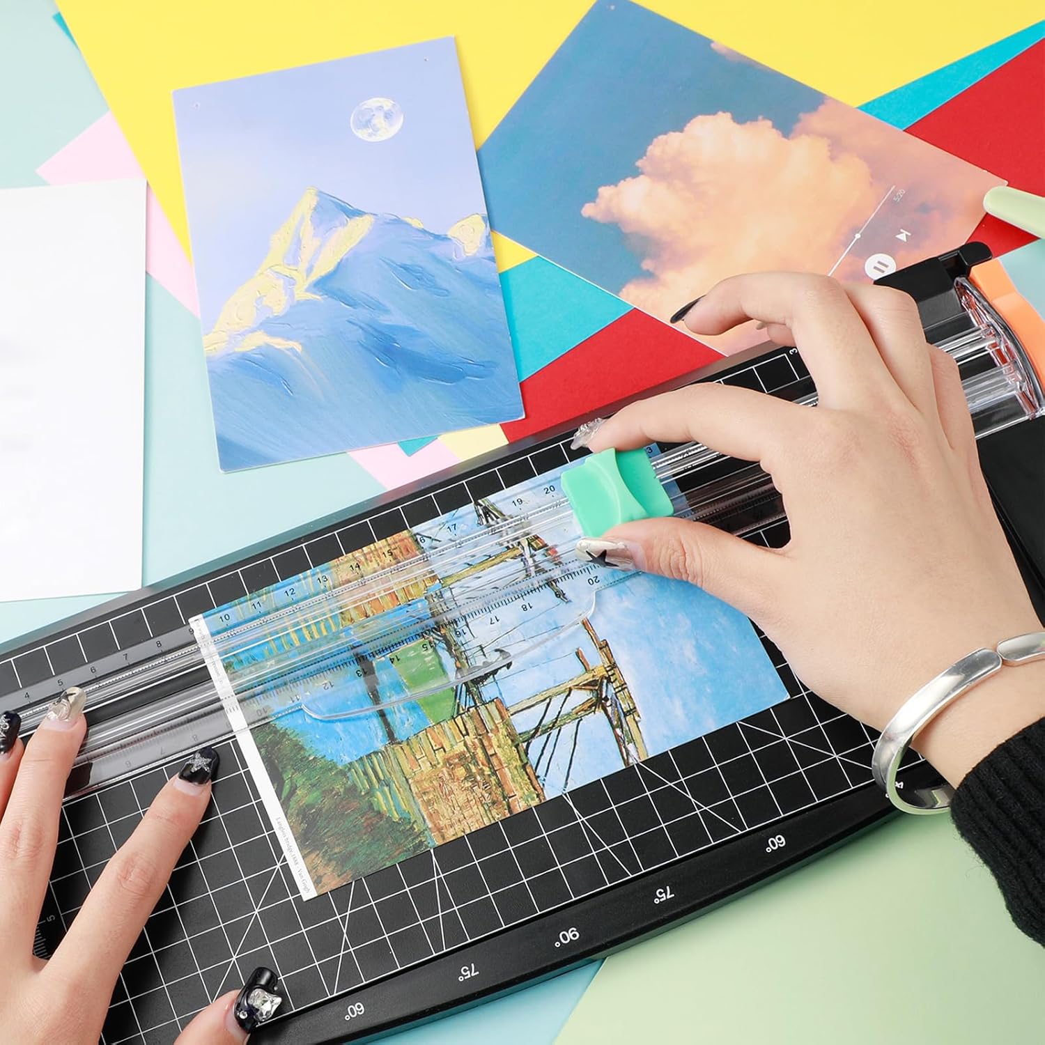 - Safe Design: the replacement blade is held under the blade holder, which prevents us from hurting ourselves when using the blade; Meanwhile, the handshaking place adopts an anti-skid design, so you can rest assured to use; Compatible with 853A4 plastic base paper cutter, A3 can cut 42 cm plastic paper cutter, 856A4 white plastic base paper cutter