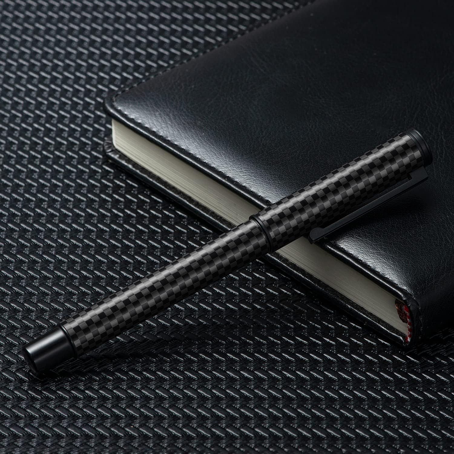 - Unique midnight black design with carbon fiber adds a touch of technology sense to your daily routine. The pen has a really nice carbon fiber weave texture on the surface, and it looks fantastic under the light with angles.
