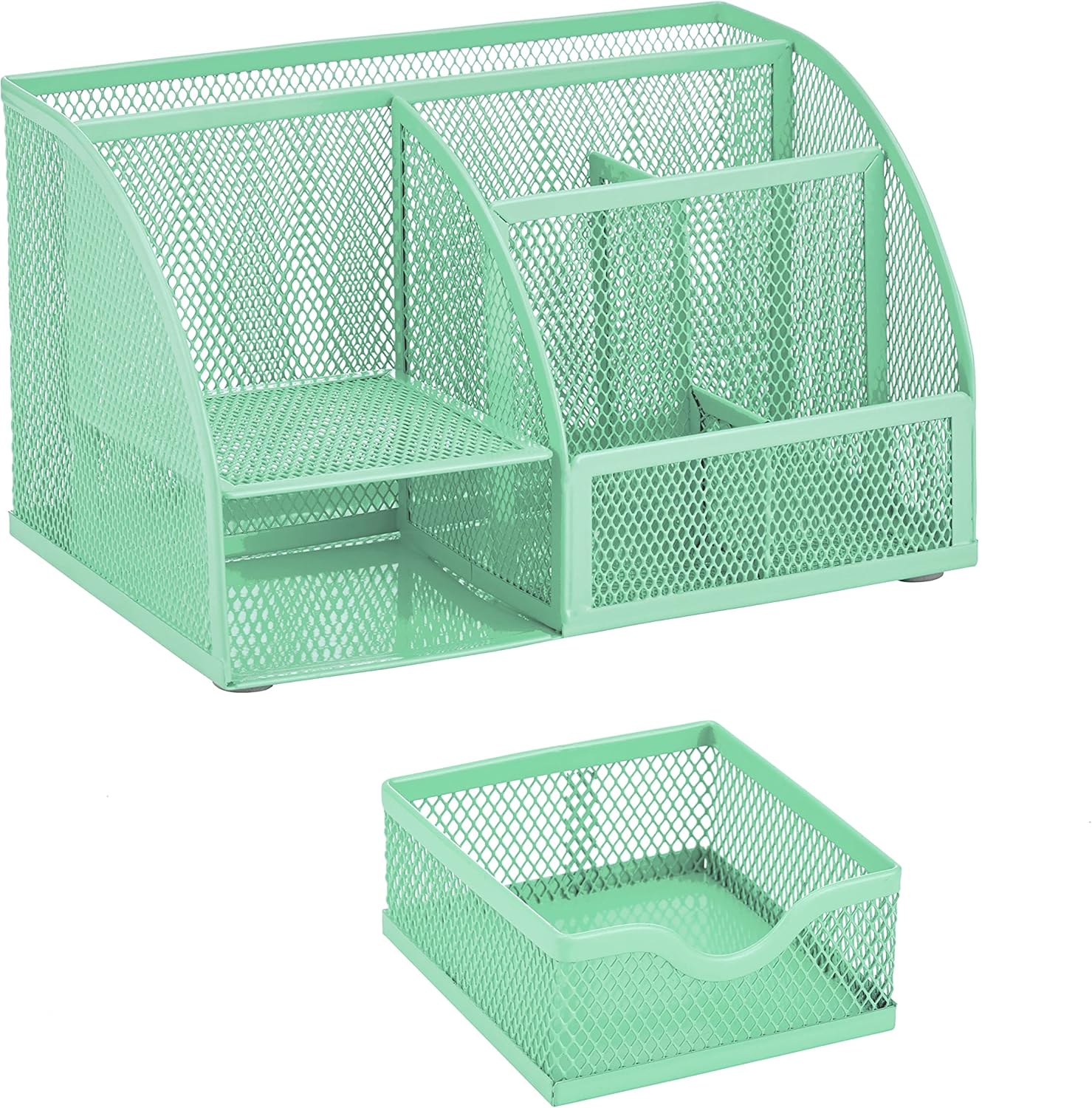 Annova Mesh Desk Organizer Office with 7 Compartments + Drawer/Desk Tidy Candy/Pen Holder/Multifunctional Organizer (Green23)