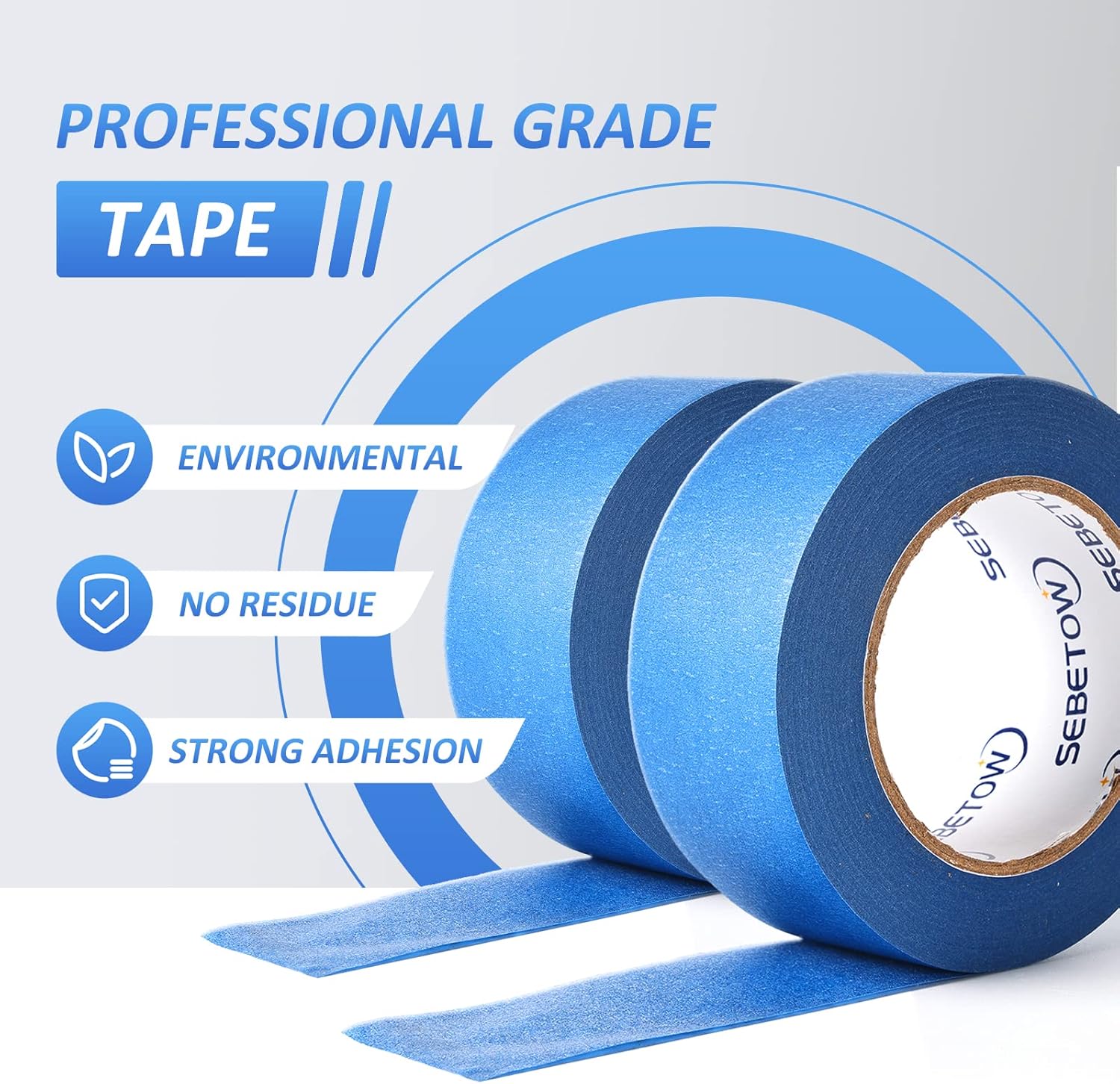 - Professional grade tape: Our blue 2-inch painter's tape will create a perfect edge for you. Sharp lines are kept nice and straight and fit perfectly to the surface or wall. It will not bleed through or deform. Even if you are a novice with no painting experience, you can also finish it perfectly. It is great for any kind of painting, edging, masking, and trimming jobs