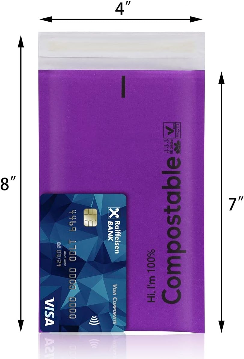 4x8 100% Biodegradable Bubble Mailers,25 Count Kraft Purple #000 Compostable Padded Packaging Wrap Envelopes Pouches Eco Friendly Self Seal Bags