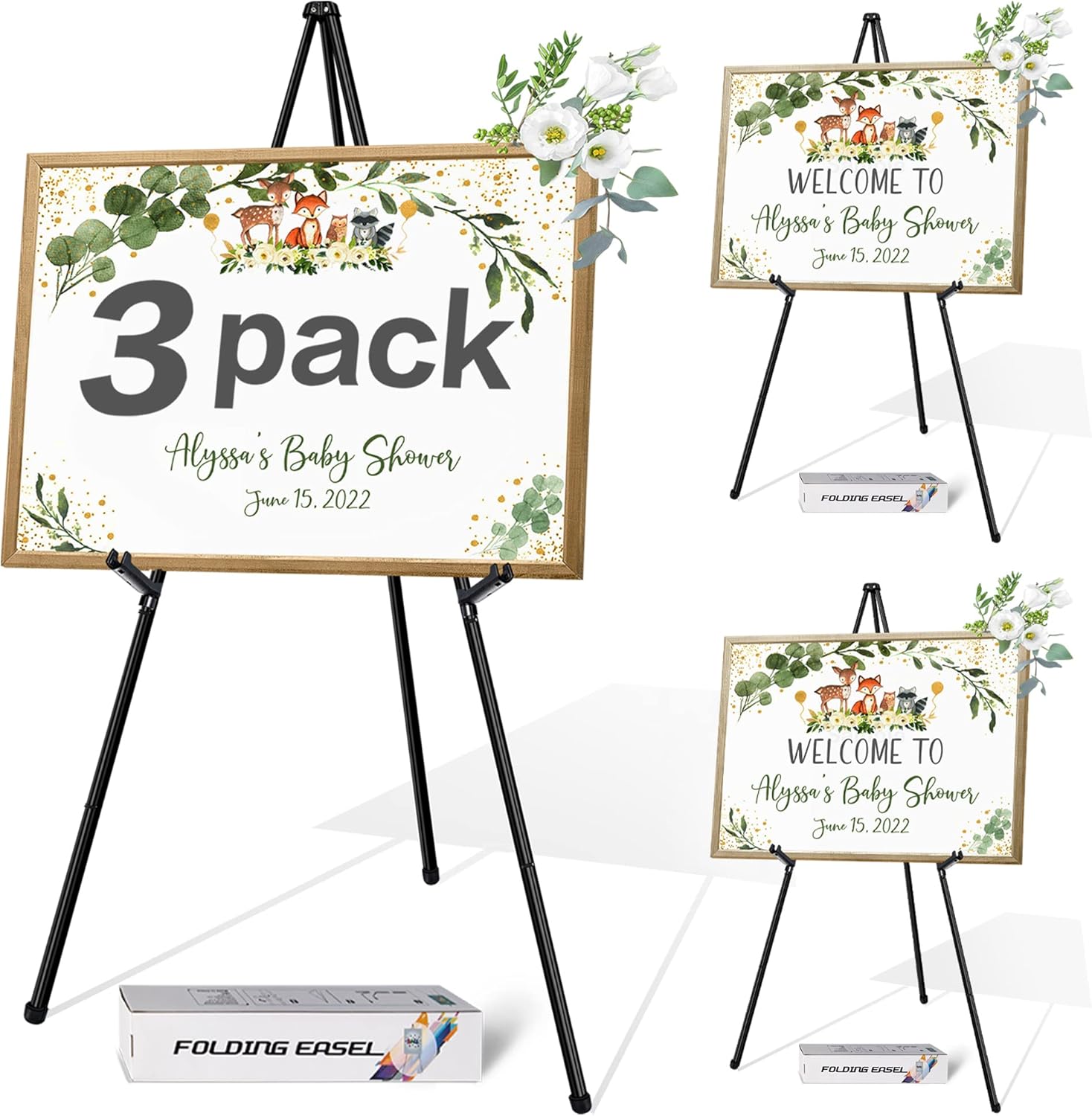 63" Display Easel Stand - 3Packs Art Easels for Wedding Sign Poster Stand Folding Floor Adjustable Metal Black Easel Instant Tripod Easel for Painting Wedding Welcome Sign Stand