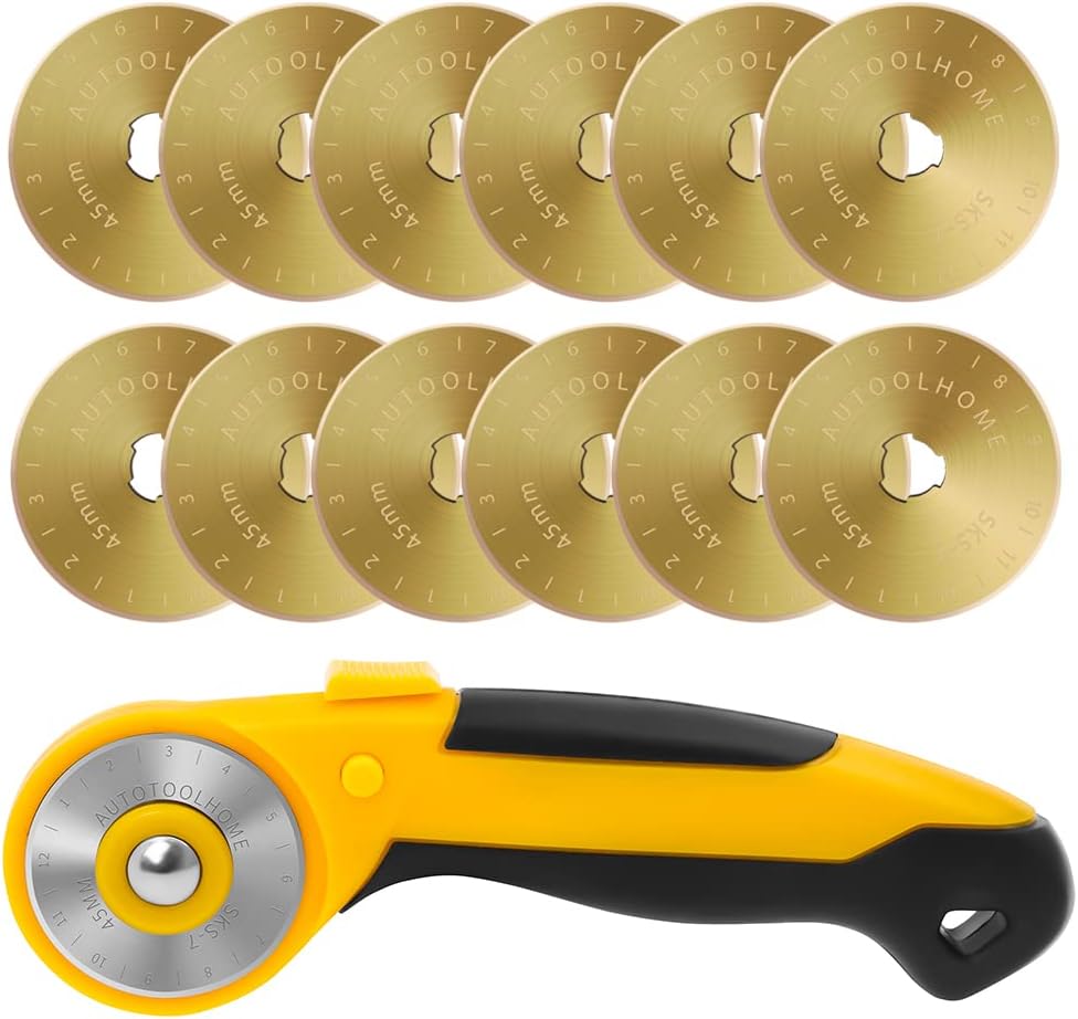 AUTOTOOLHOME 45mm Rotary Cutter Automatic Fabric Cutter Quick Change Blades with Safety Lock for Quilting, Sewing, Crafts, 10pcs Titanium Replacement Blades