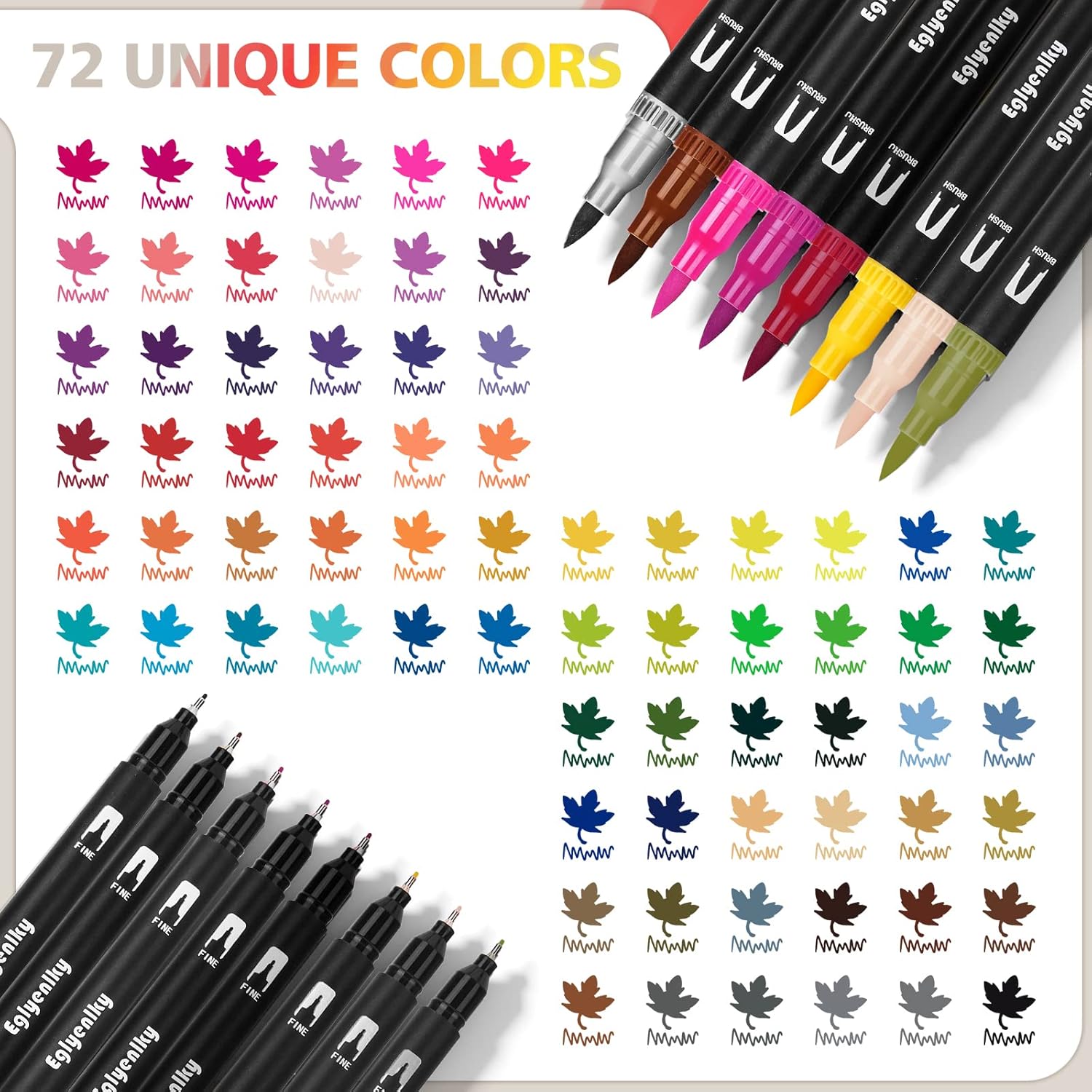 - 72 UNIQUE COLORS SPECTRUM - Applying these 72 pens 144 tips. It’s difficult for you to run out colors of the deluxe brush marker pens set one time when creating a work of art. Every ink of dual tip brush pens is unique, NO duplicate.