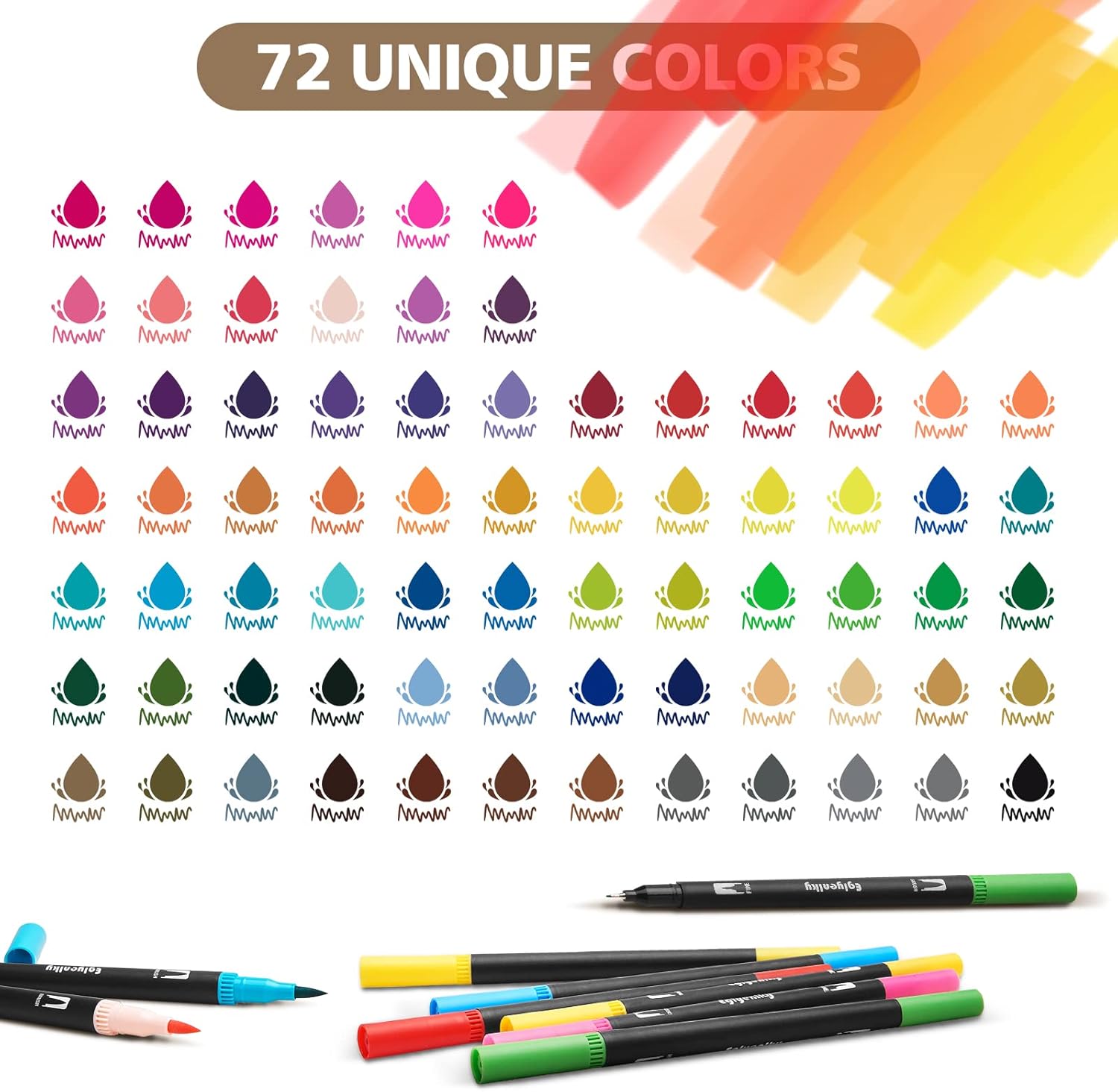 72 Dual Tip Brush Pens, Adult Coloring Markers with Fine and Brush Tip for Kid Adult Artist Drawing Journaling Lettering Calligraphy