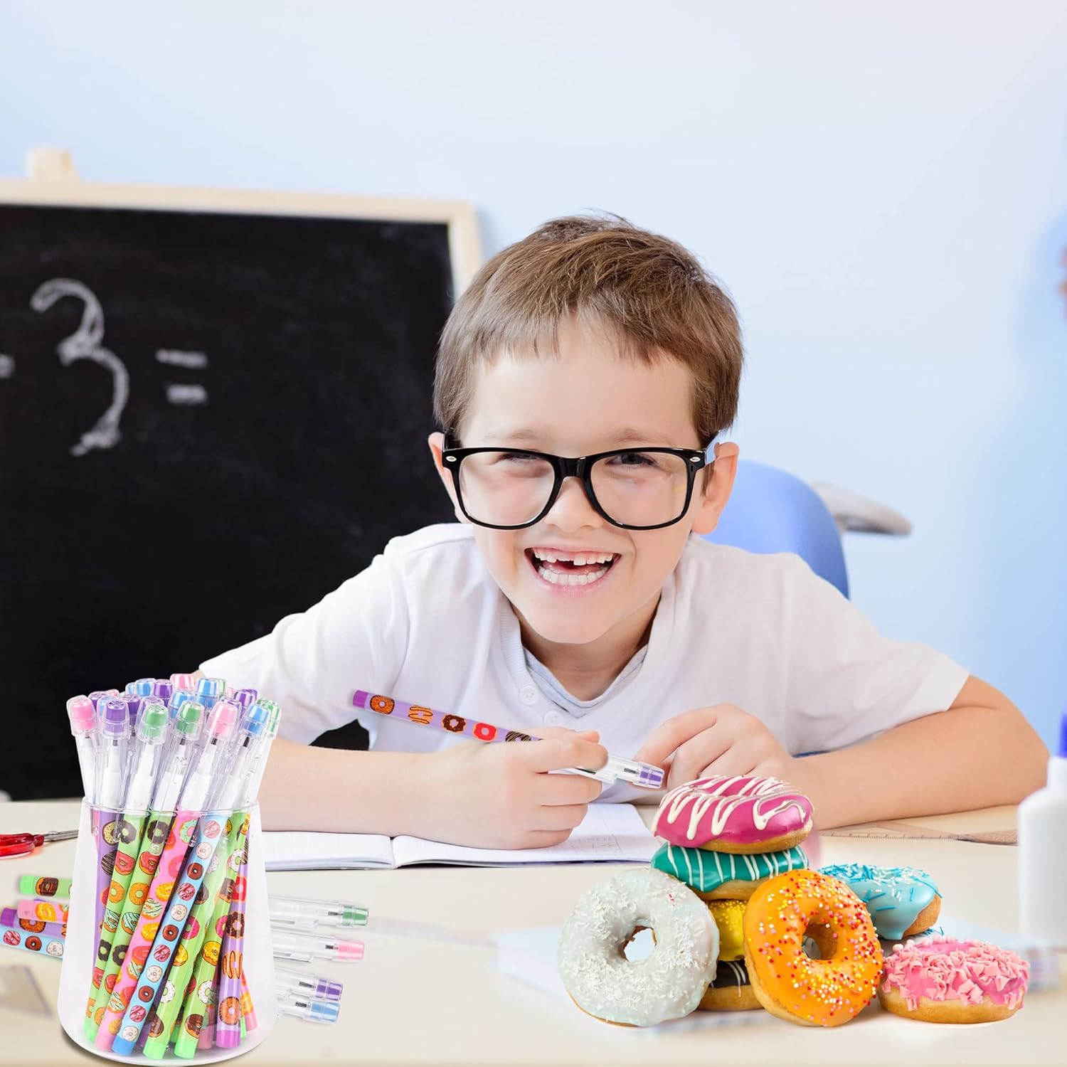 Kolewo4ever 48pcs HB Donuts Themed Translucent Pencil Fun Multipoint Pencil Multicolor Non Sharpening Stackable Pencils Pop Up Plastic Pencils for Classroom Rewards Carnival Prizes