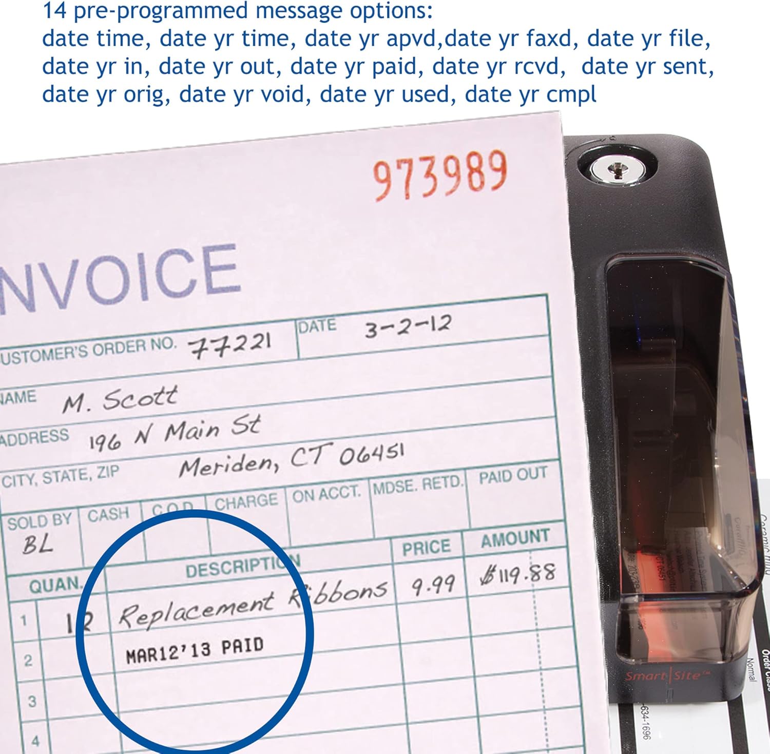 - VERSATILE FUNCTIONALITY β Functions as both as an employee time clock and a document stamping machine. Ideal for small to mid-sized businesses managing time tracking, job costing, form stamping, or sequential page numbering up to 9,999