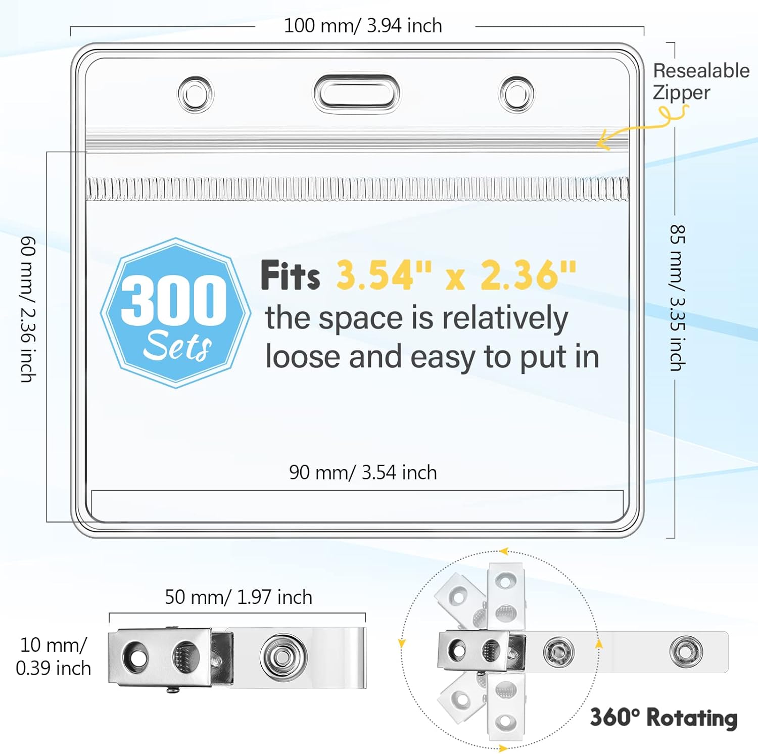 - Proper space: you will get 300 pieces clear name card holders and 300 pieces metal clips, helping you comfortably hold IDs, driver's license, employee's card and so on