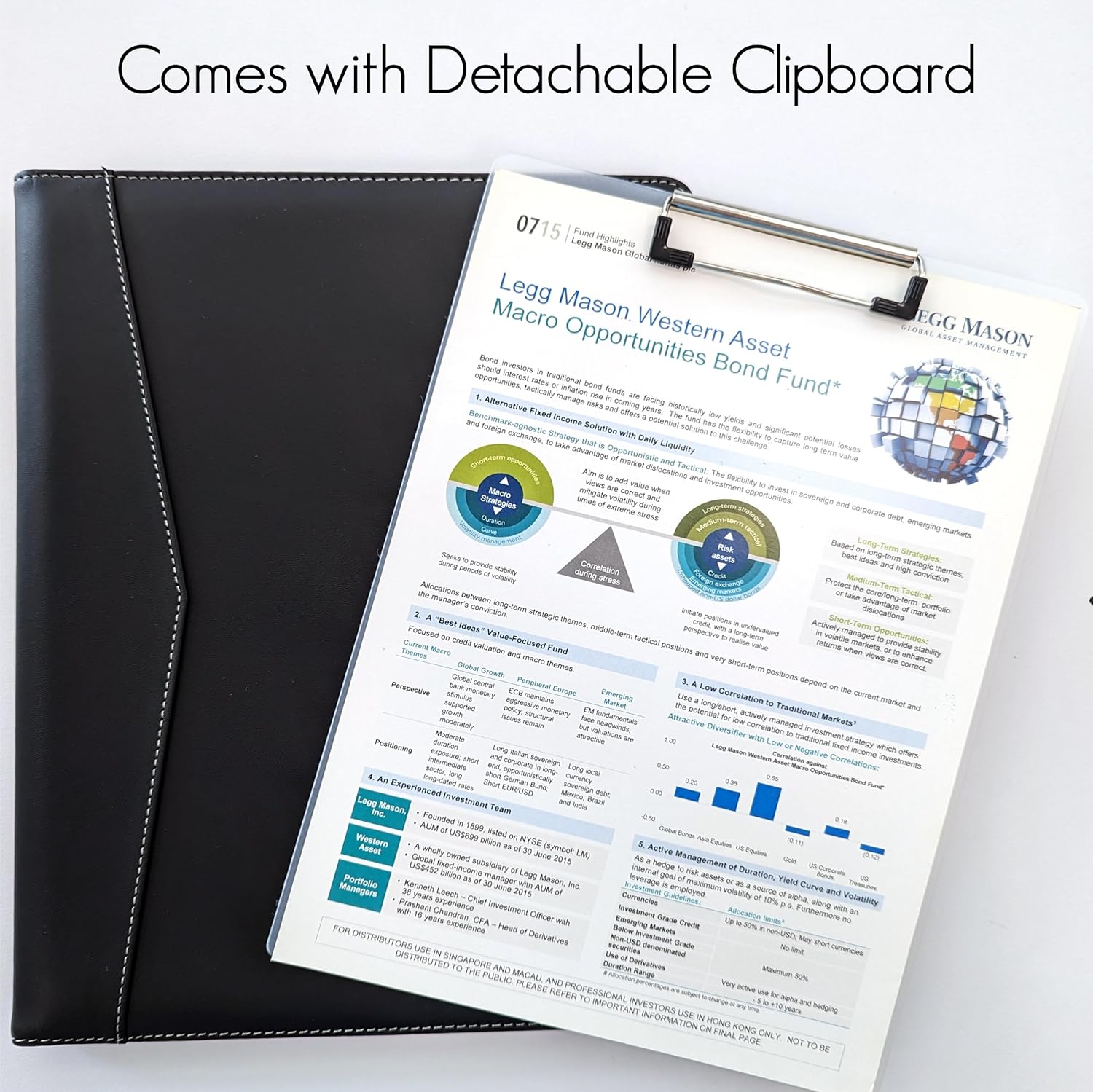 - โ STYLE MEETS FUNCTION: Elegant portfolio folder featuring a removable clipboard. New slim 360 degree flip design enables you to fold the padfolio back on itself, so you can lay it flat and write flat life a conventional clipboard.