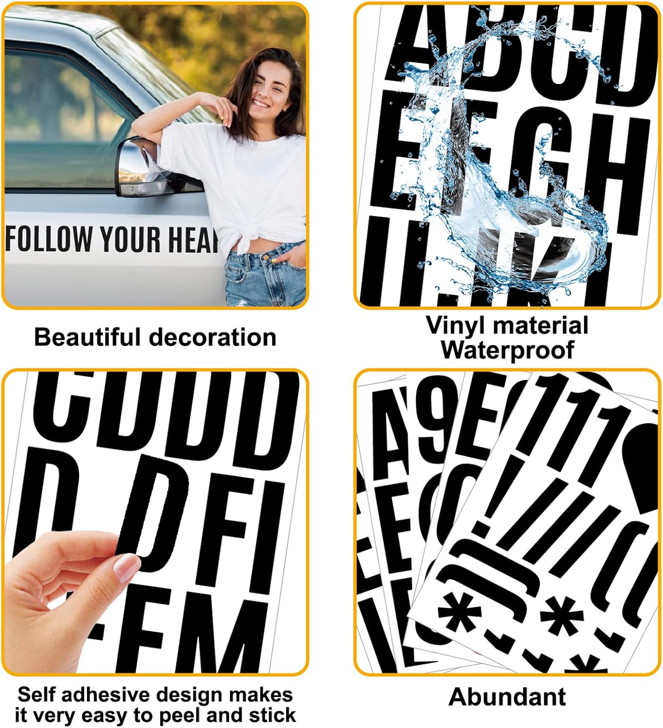 - High Quality Material: The letters are made of high quality vinyl material, waterproof, sun-proof, scratch-proof, re-pasteable and suitable for indoor and outdoor use
