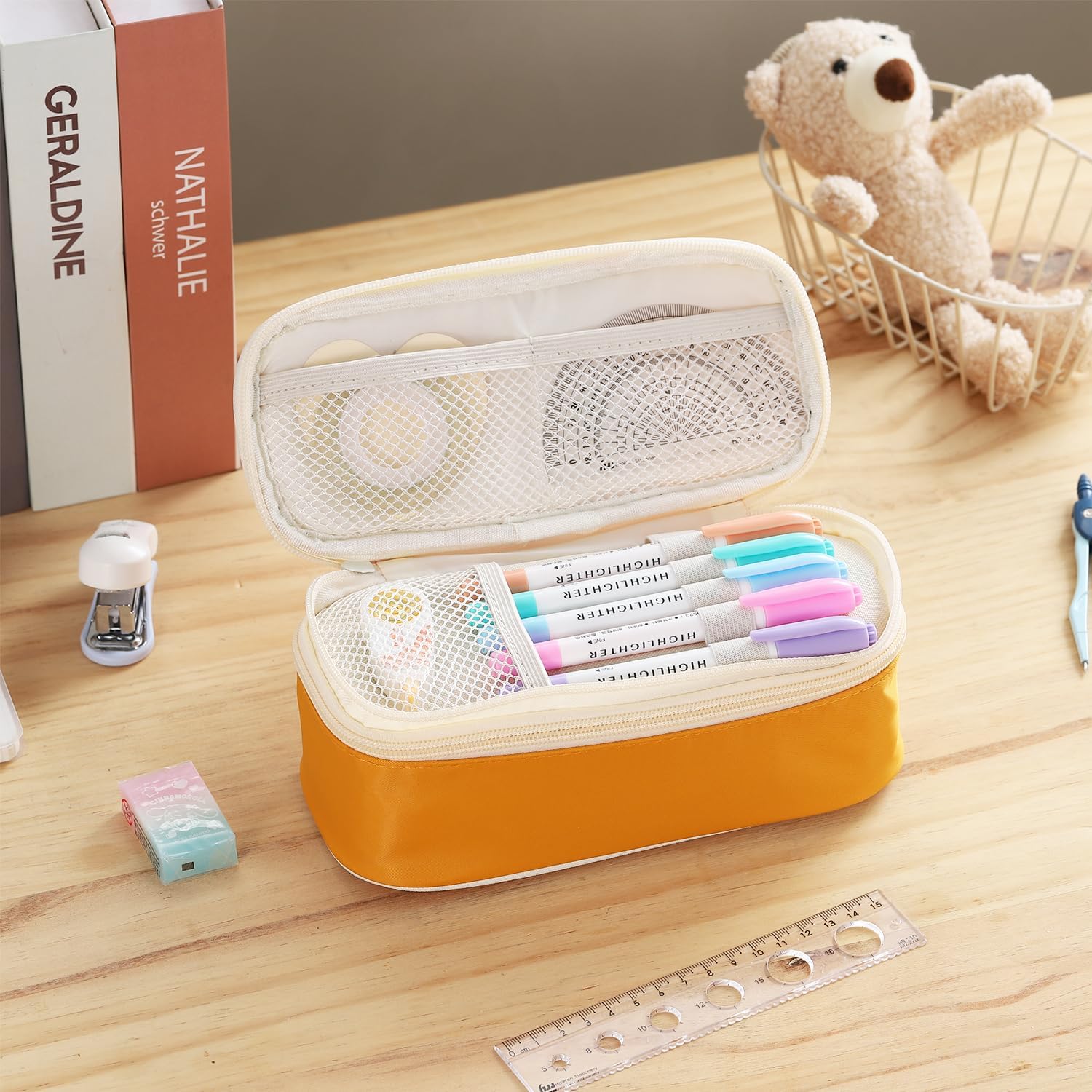 Big Pencil Case Large Capacity Pencil Bag with Zipper Pencil Pouch for Girls Boys Kids Adults Stationery Pencil Pen Case Organizer for School Office Yellow