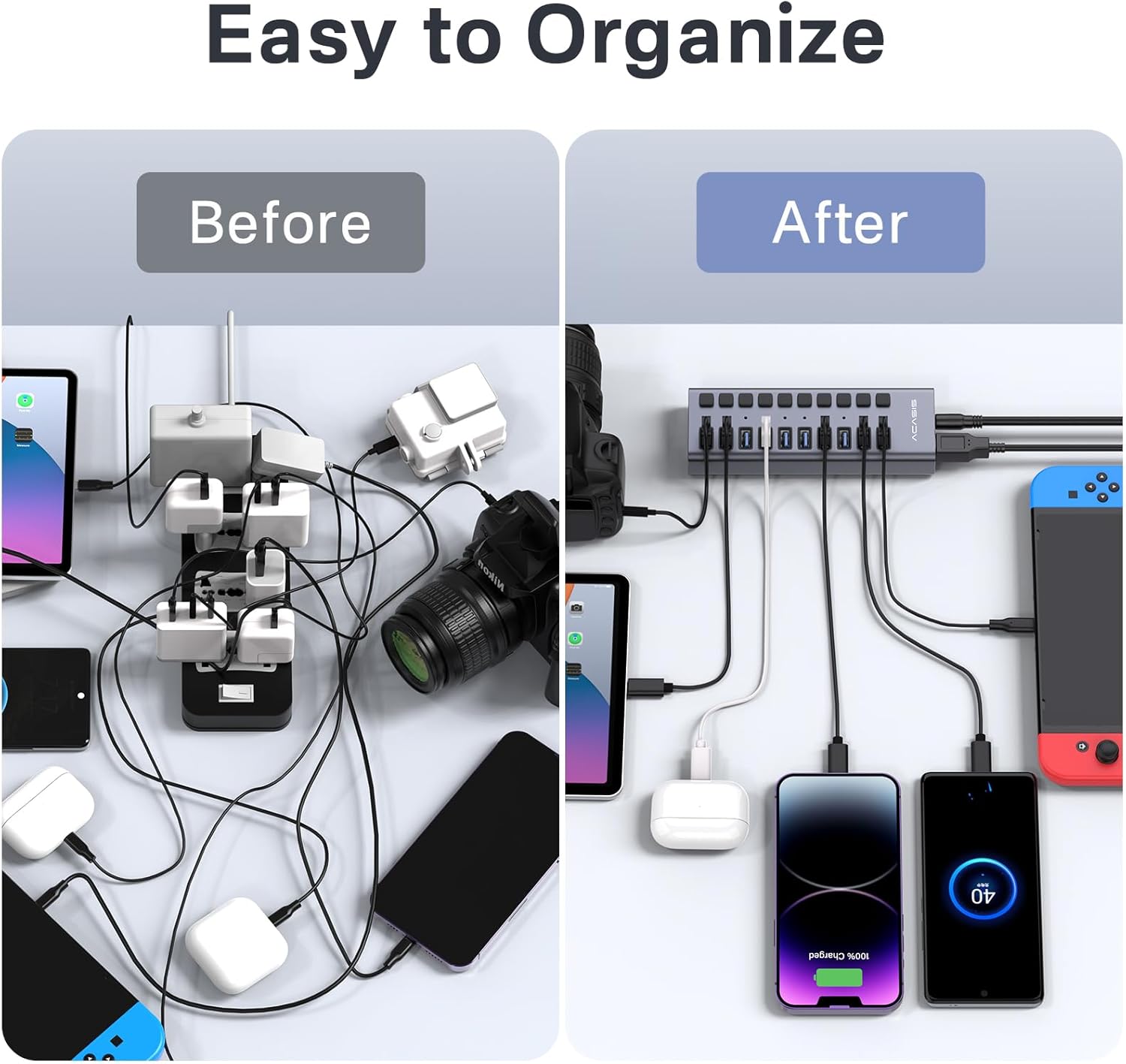 - 2024 UPGRADED ACASIS USB 3.1 Hub: This USB 3.1 hub features 10 ports with 10Gbps data transfer speed will greatly improved your work productivity and connectivity