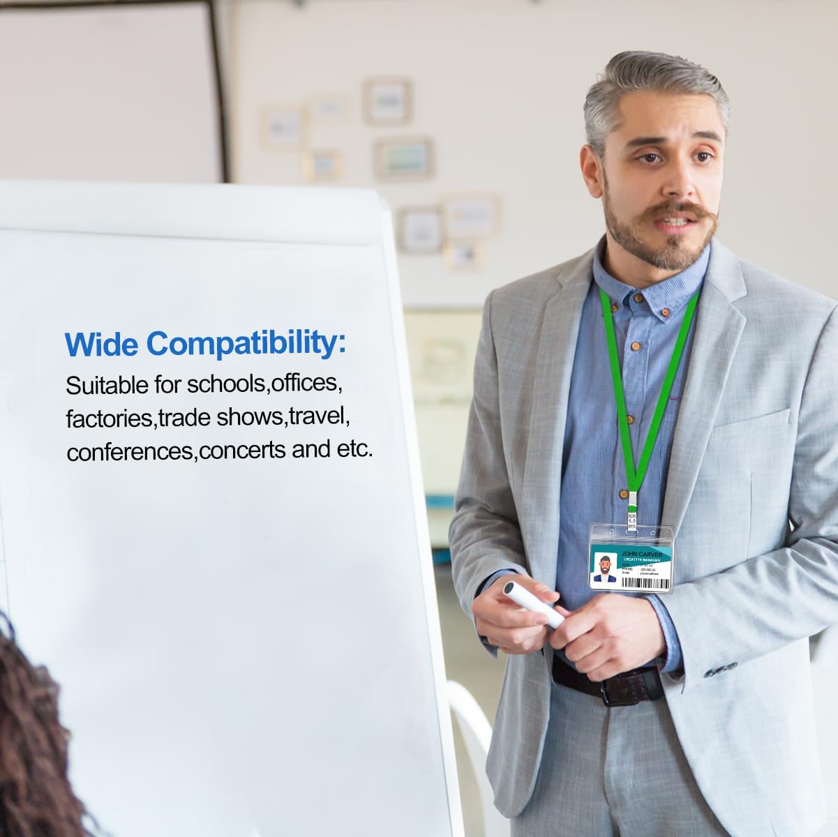 100 Pcs Clear Horizontal Badge ID Card and 100 Pcs Lanyard, Reusable Lanyards for Id Badge Holder Name Tag Badge Holder with Lanyards for Adults Kids Business School Conferences (Green)