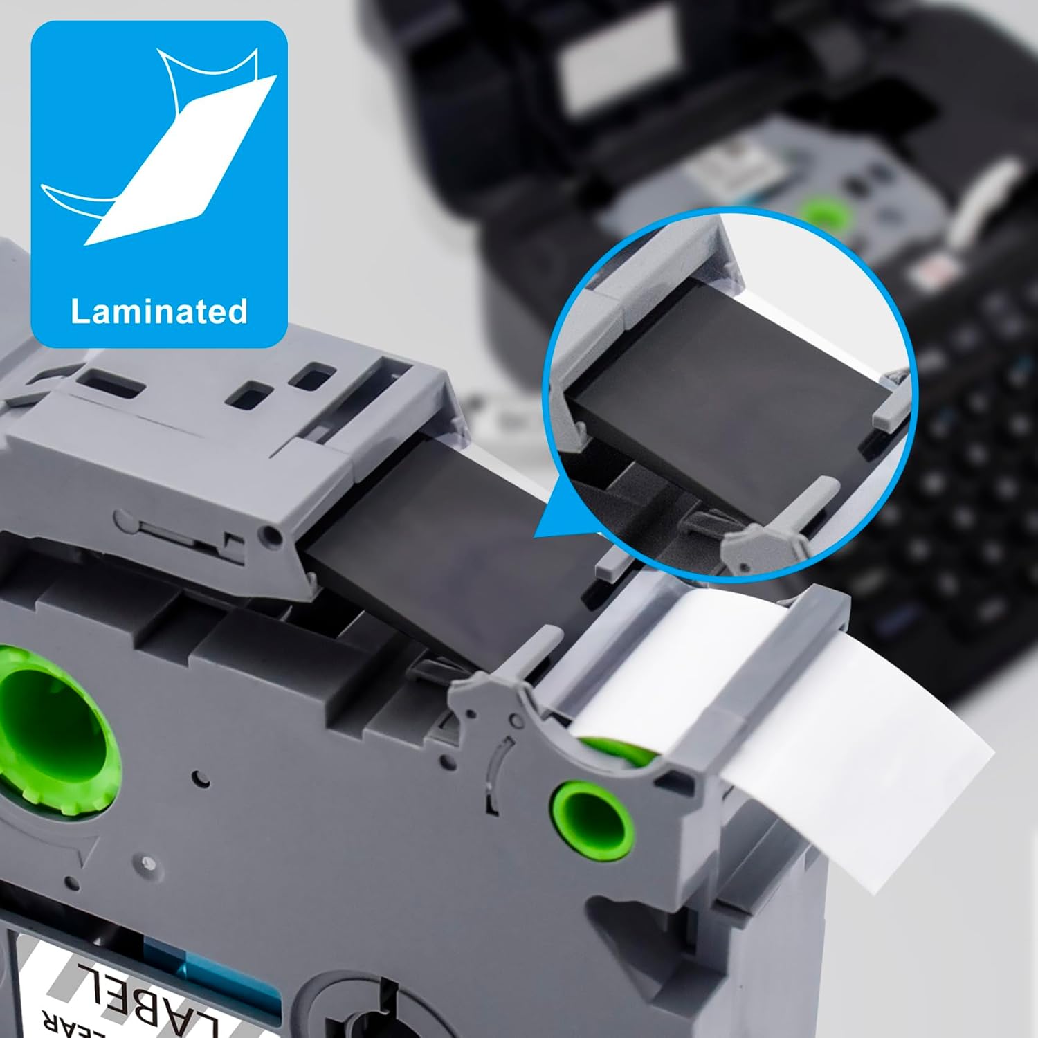 - TZe Tz tape 18 mm 0.7 laminated clear compatible with Brother ptouch label makers: PT-D400,PT-D600,PT-D410,PT-D460BT,PT-D610BT,PT-D400AD,PT-D400VP,PT-D600VP,PT-P710BT,PT-P750W,PT-E550W,PT-P700,PT-2730VP,PT-H500LI,PT-2730,PT-2430PC,PT-D450,PT-1880,PT-1830,PT-1890SC,PT-2300,PT-300,PT-310,PT-E300,PT-E300VP,PT-E500,PT-E550W,PT-520,PT-530,PT-540,PT-550,PT-1400,PT-1500,PT-1500PC,PT-1600,PT-2110,PT-2200,PT-2210,PT-2300,PT-2310,PT-2400,PT-9700PC and more