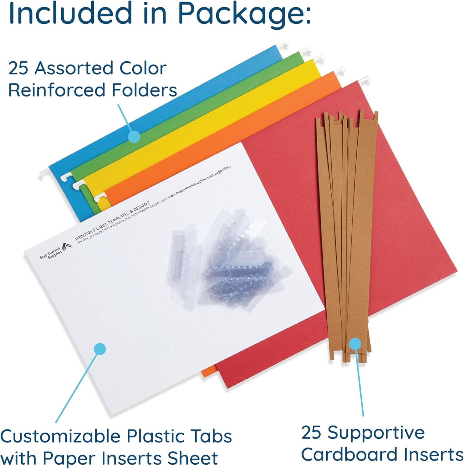 25 Blue Summit Supplies Hanging File Folders 1 inch Expansion, Assorted Colors Hanging File Folders Extra Capacity 1 inch, 11PT Paper, 1 inch Expandable File Folders, 25 Pack