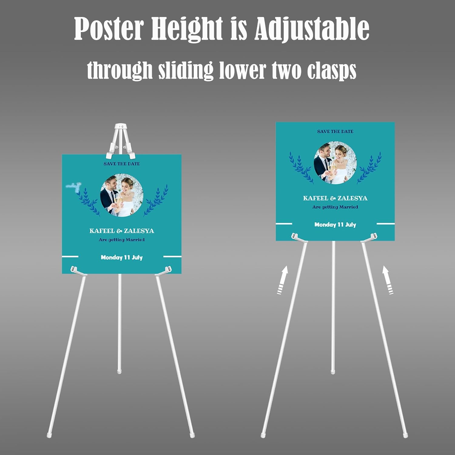 - ๐๐จ๐ฌ๐ญ๐๐ซ ๐๐๐ข๐ ๐ก๐ญ ๐๐๐ฃ๐ฎ๐ฌ๐ญ๐๐๐ฅ๐: Through sliding 4 buckles up or down,then fix to the height you need,put on poster or sign.You can adjust easelโs height through adjust the distance between three legs.