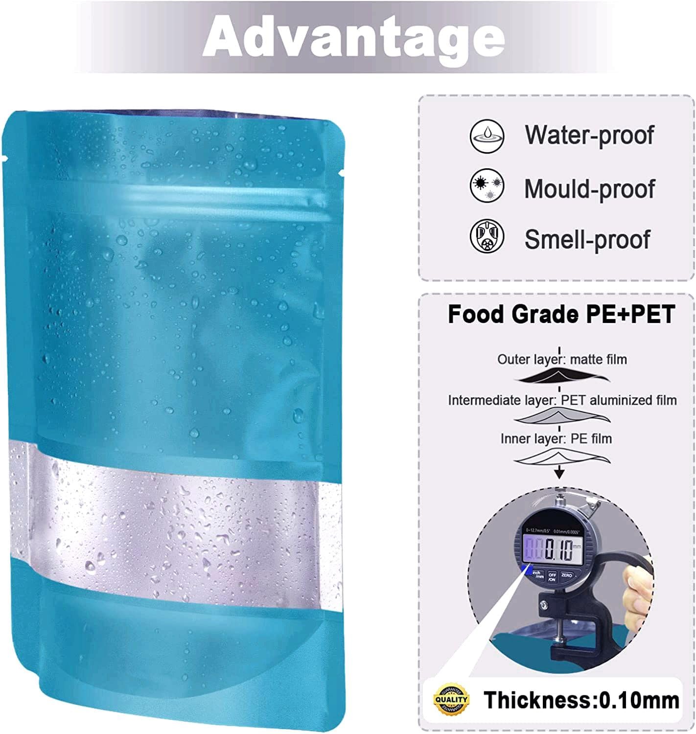 - 【High Quality】120pcs blue mylar bags.The material of stand up storage bags is mylar film and aluminum film.The thickness of single layer reaches 0.10mm.Because of the photography and the monitor reason, cannot accept the chromatic aberration the buyer please discretely to purchase, thank the cooperation.