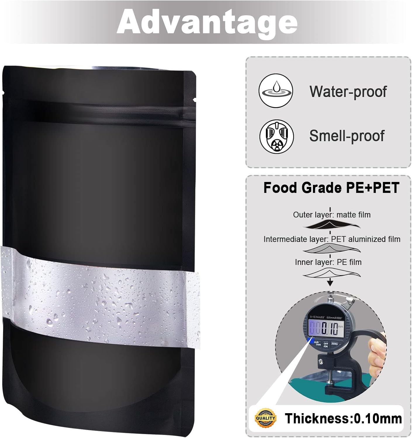 - 【High Quality】120pcs black mylar bags.The material of stand up storage bags is mylar film and aluminum film.The thickness of single layer reaches 0.10mm.Because of the photography and the monitor reason, cannot accept the chromatic aberration the buyer please discretely to purchase, thank the cooperation.