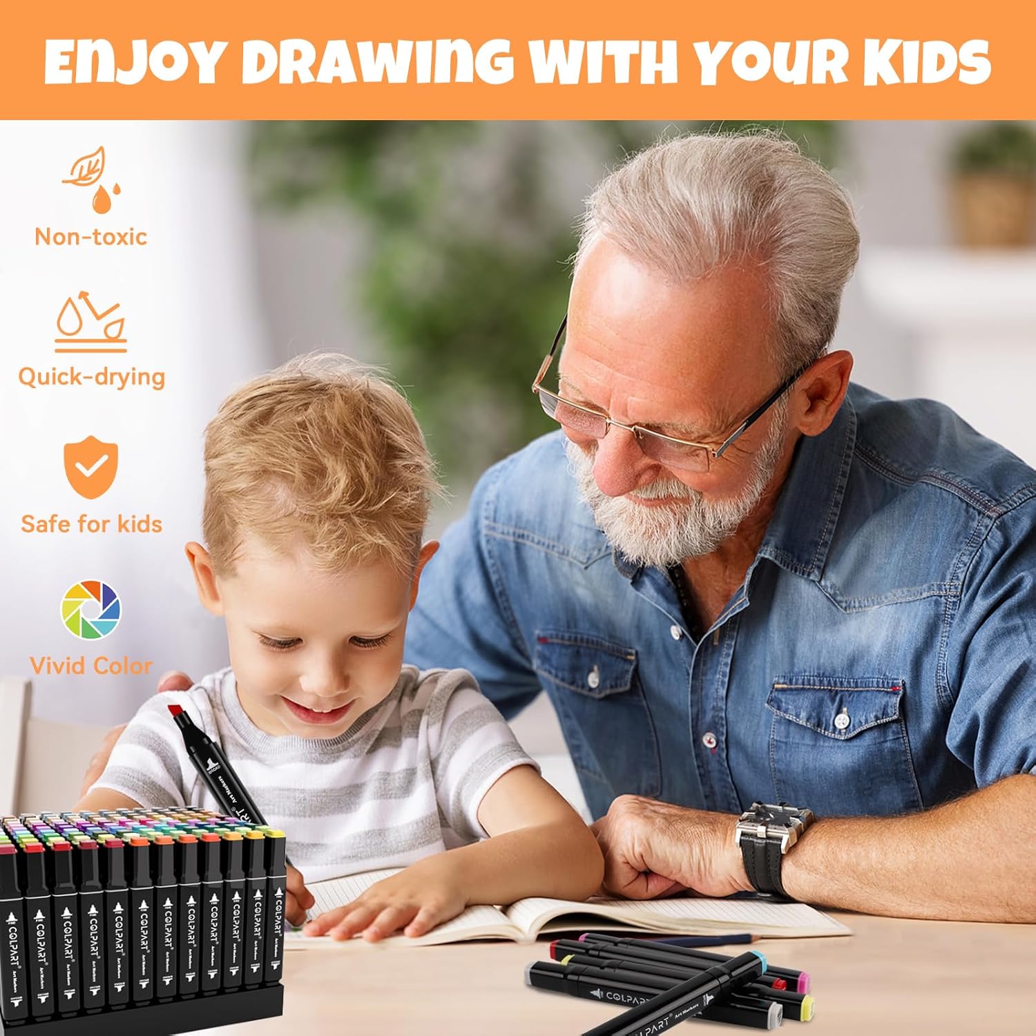 - 【Portable Art Markers】Art supplies comes with a zipper carry bag for storing,Make alcohol markers set very easy and convenient to portable carry to anywhere you want, Especially for travel or outdoor work.The storage bag provides a safe and organized space for keeping the alcohol markers when not in use, preventing it from getting misplaced or damaged.