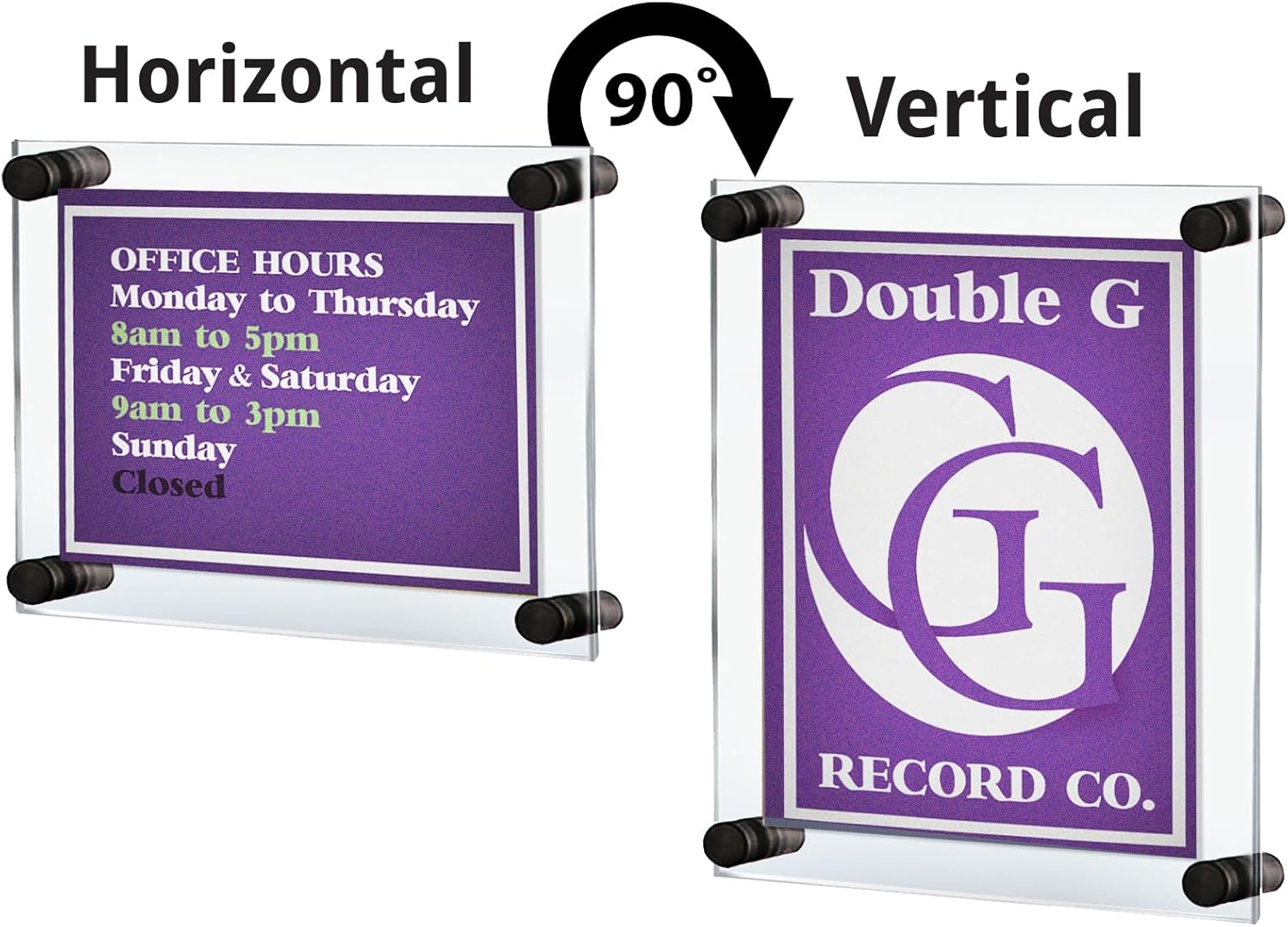 - โ HARDWARE INCLUDED - Each floating sign holder frame set includes 2 acrylic panels that are 3/16โ thick, 4 standoff caps and hanging hardware. Note: Large format sizes: 24โ x 36โ and 30โ x 40โ include 6 standoffs and caps.