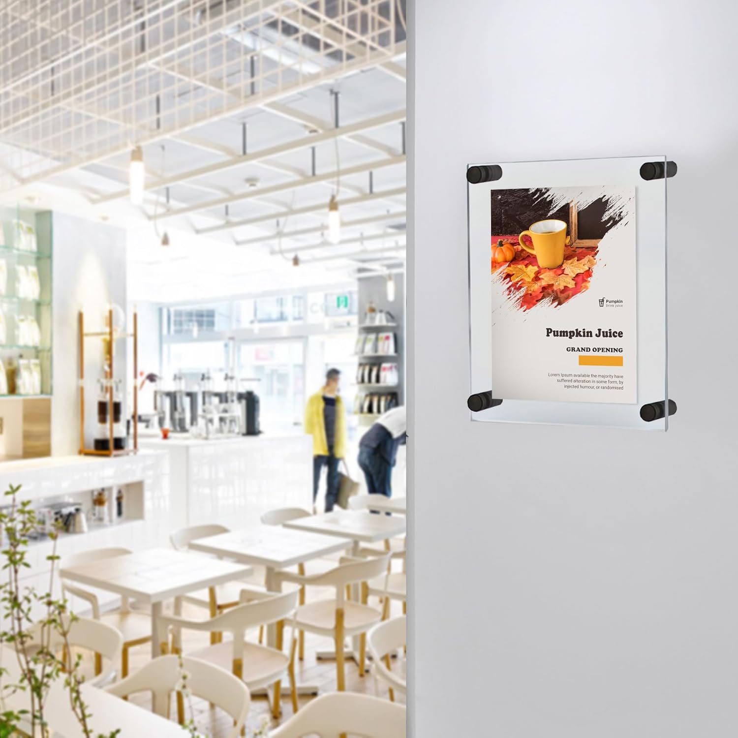 - โ HARDWARE INCLUDED - Each floating sign holder frame set includes 2 acrylic panels that are 3/16โ thick, 4 standoff caps and hanging hardware. Note: Large format sizes: 24โ x 36โ and 30โ x 40โ include 6 standoffs and caps.