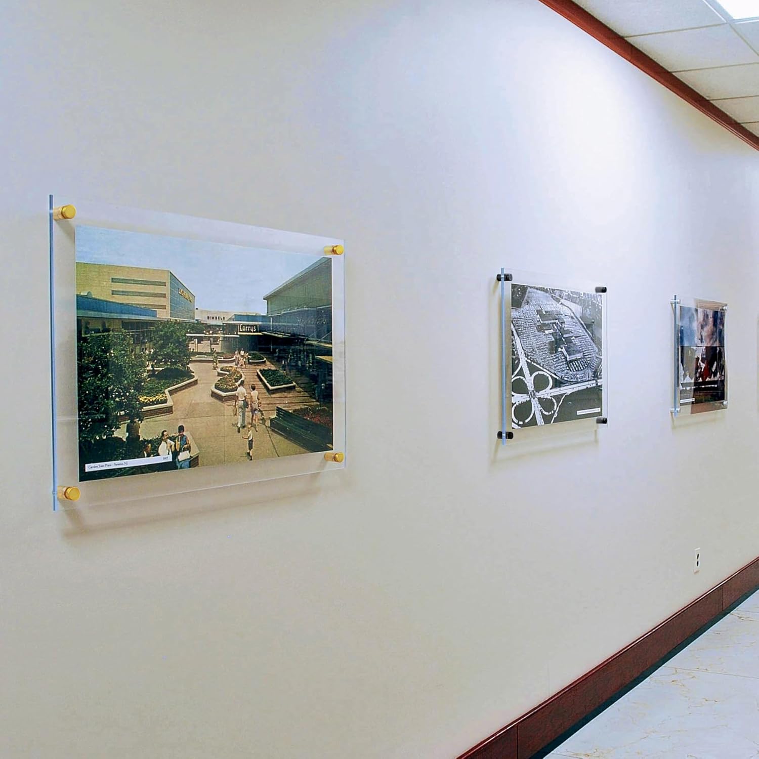 - โ Give your prints and photos the gallery treatment with our stylish Acrylic Floating frame. Two panels of clear acrylic enclose your artwork off from the wall, lending it a floating effect. The borderless presentation cedes center stage to whatโs inside and when you want to swap out your display, simply unscrew the caps and lift the panels.