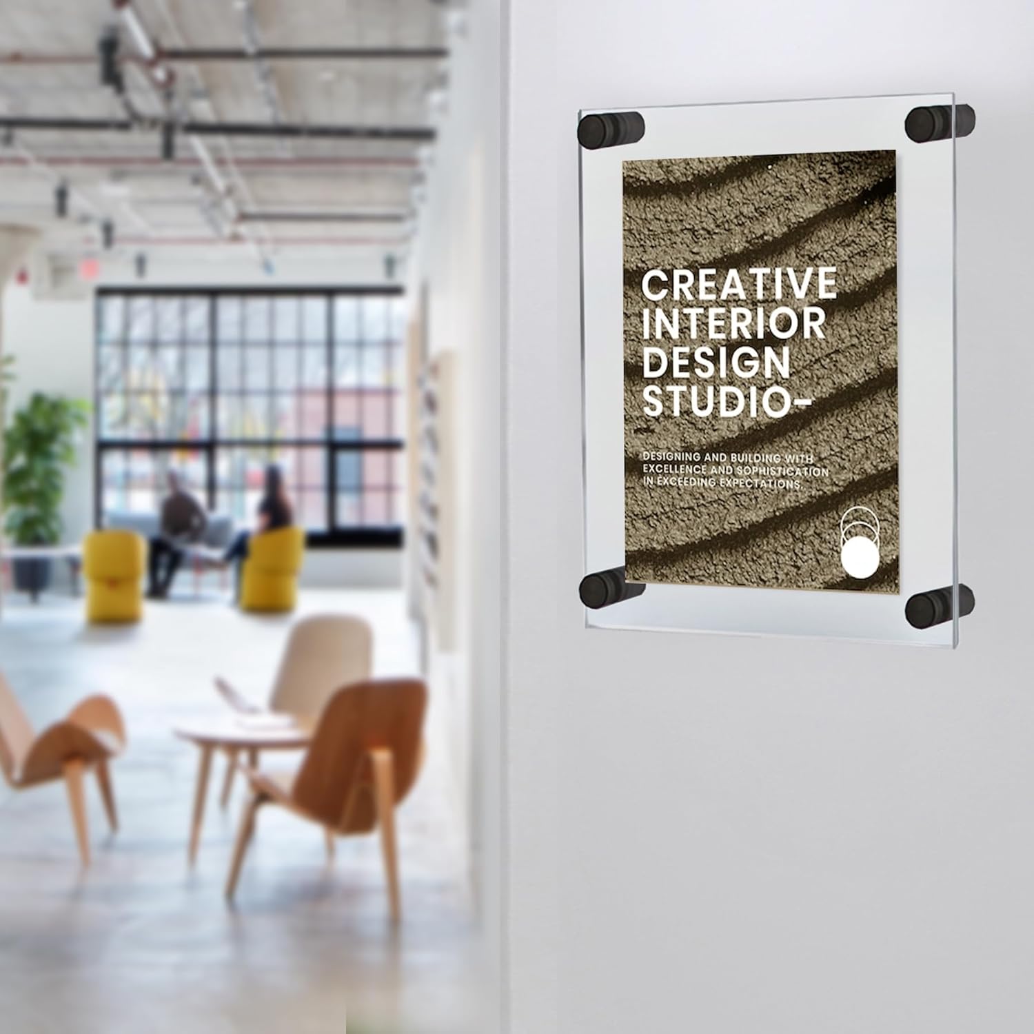 - โ HARDWARE INCLUDED - Each floating sign holder frame set includes 2 acrylic panels that are 3/16โ thick, 4 standoff caps and hanging hardware. Note: Large format sizes: 24โ x 36โ and 30โ x 40โ include 6 standoffs and caps.