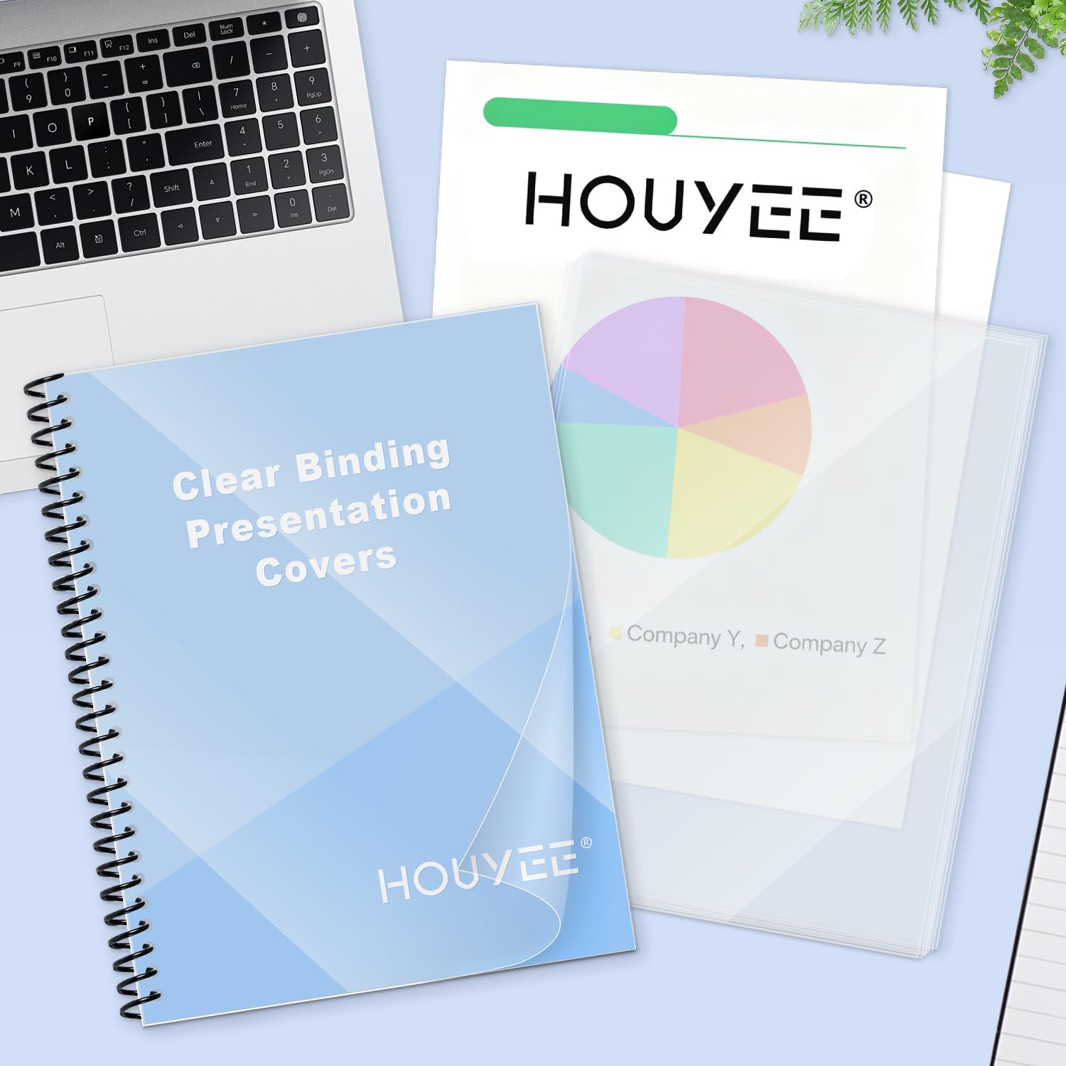 HOUYEE 200 Pack Clear Binding Presentation Covers, PVC Report Covers,10 Mil,8-1/2 x 11 Inches, Letter Size