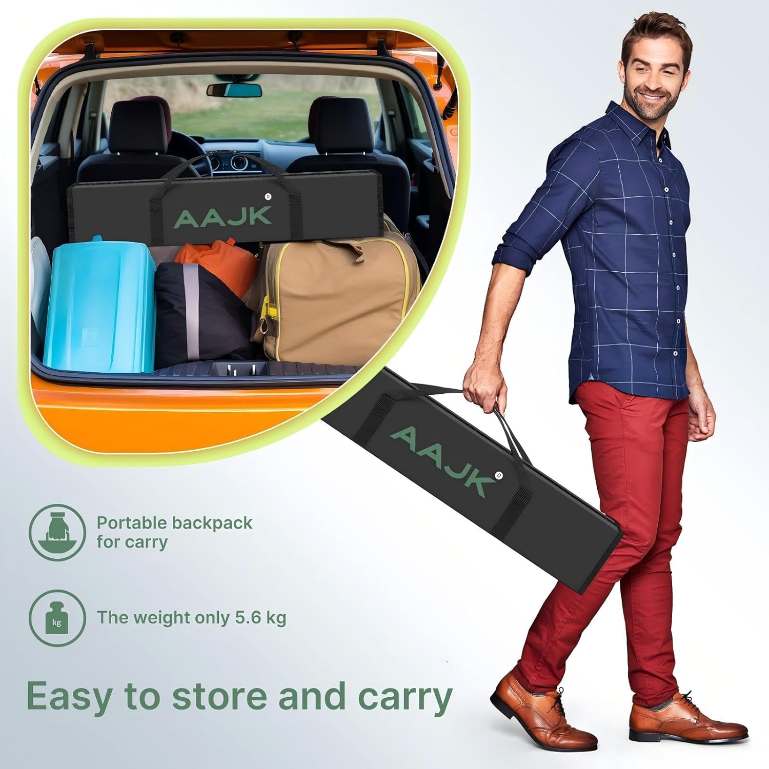 - Portable Convenience, Effortless Setup: Foldable and compact, measuring 31.2'' x 8.2'' x 4.4'' and weighing 12.3 pounds, it's easy to carry. Quick setup with no screws needed—just a few accessories and a partner to complete assembly within 5 minutes