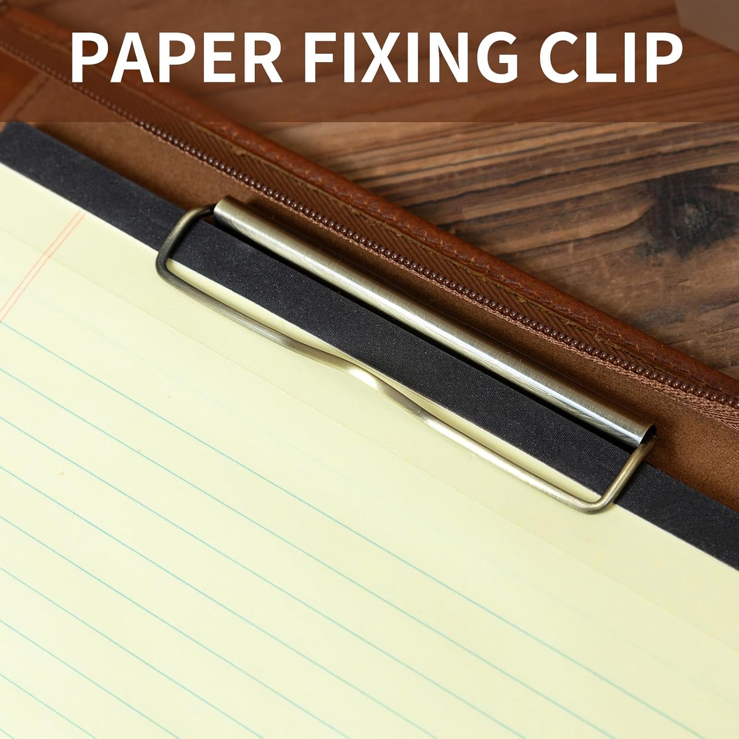 - MULTIFUNCTIONAL ORGANIZER FOR BUSINESS PEOPLE – With rationally designed multi-compartments and pockets in different sizes, our leather folder portfolio accommodates and organizes all your business essentials such as legal pads, loosen leaves, pens, cell phone, tablet, With the robust zipper closure, you can keep your stuffs safe and neatly organized inside the pad folio.Right side writing pad holder is designed for letter size (8.5” X 11.0”) replaceable notepad, spring clip.