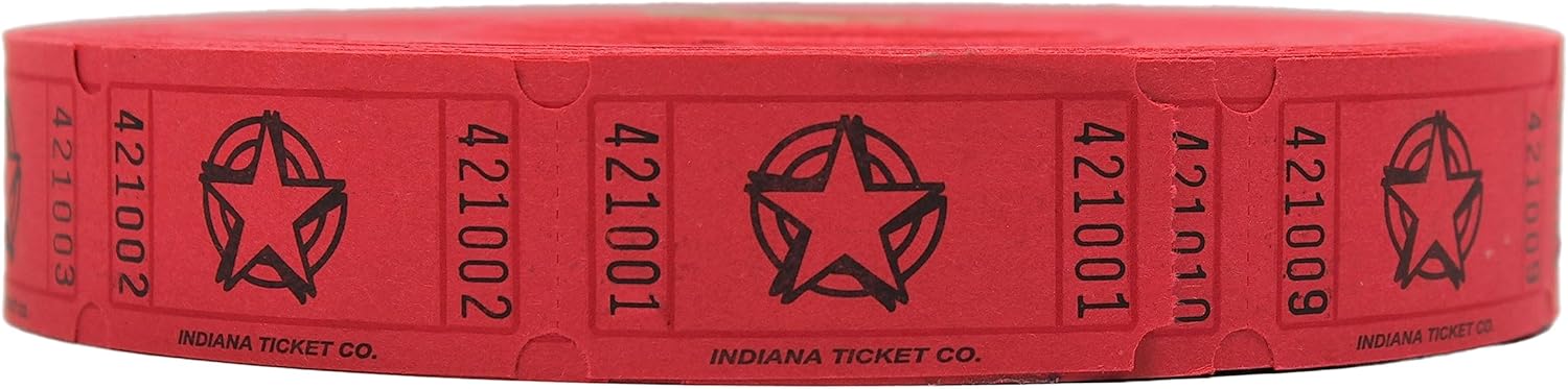 INDIANA TICKET CO. 2,000 Red Star Tickets, Single Roll – 4 Color Selection – Classroom Rewards, Events, Fundraisers, Door Entry, Raffles, Prizes, Drink/Food Tickets, Party Supplies & More.