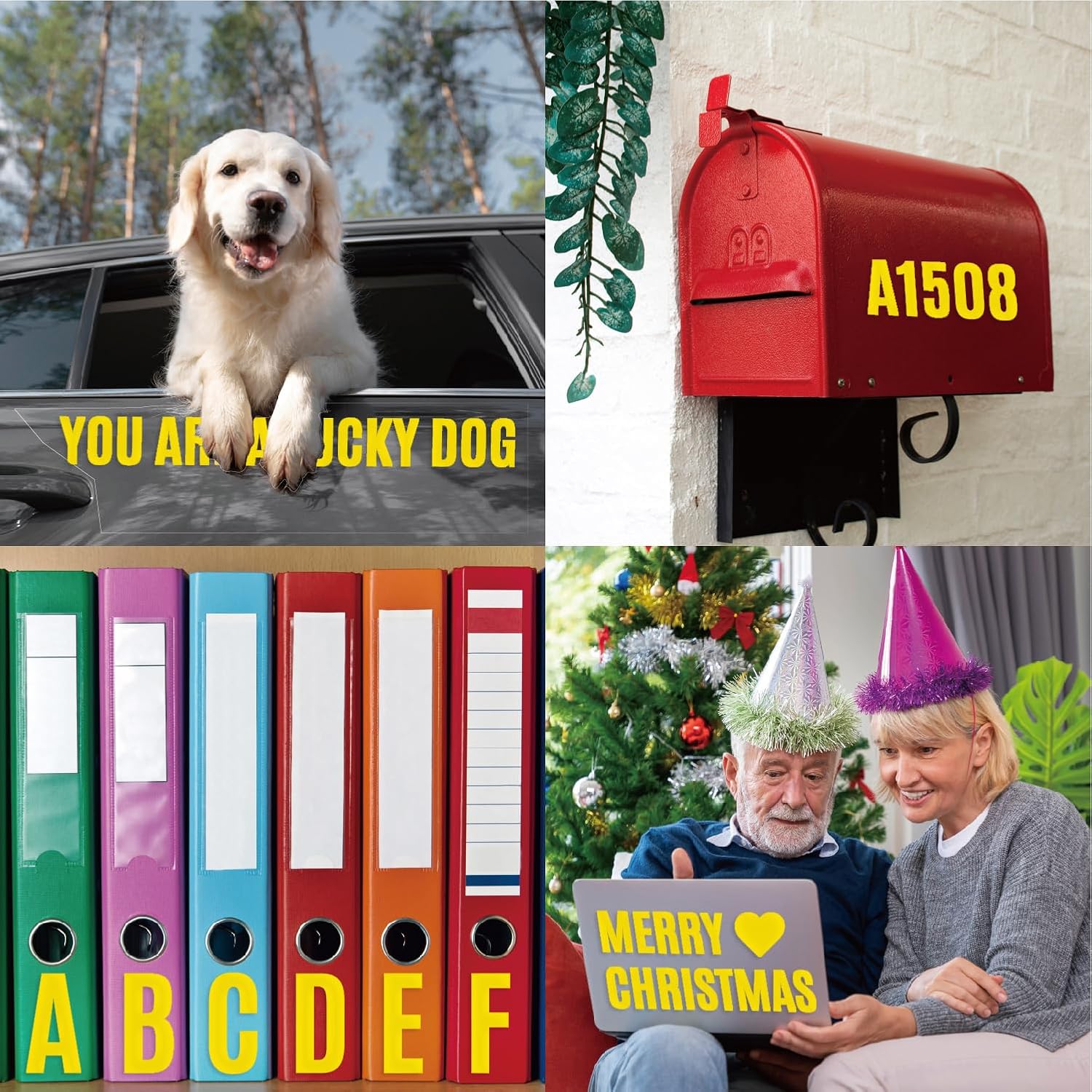 - Wide Applications: these self adhesive vinyl letters can be applied to any smooth surface like windows, metal, glass, plastic, skateboards, guitars, bottles, cars, computers, phones, trash bins lids, address light, school sign, craft, street numbers, steel mailbox, garage bins, labeling machines,room number labeling, porch pillars etc.
