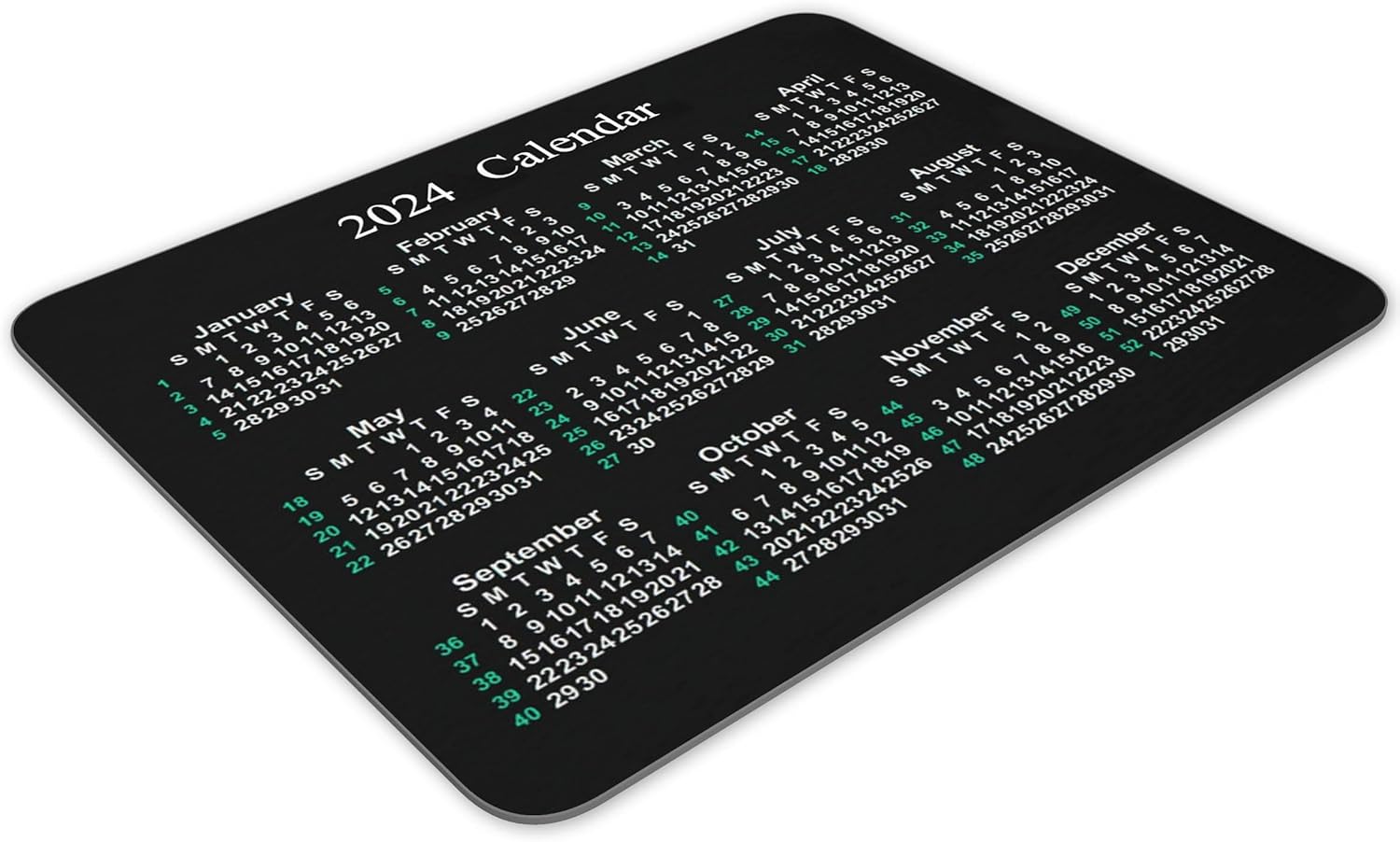2024 Calendar Horizontal Non-Slip Rubber Mouse Pad, Calendar Black Mouse Mat Mouse Pad Office Gaming Mousemat 9.5 inch x 7.9 inch