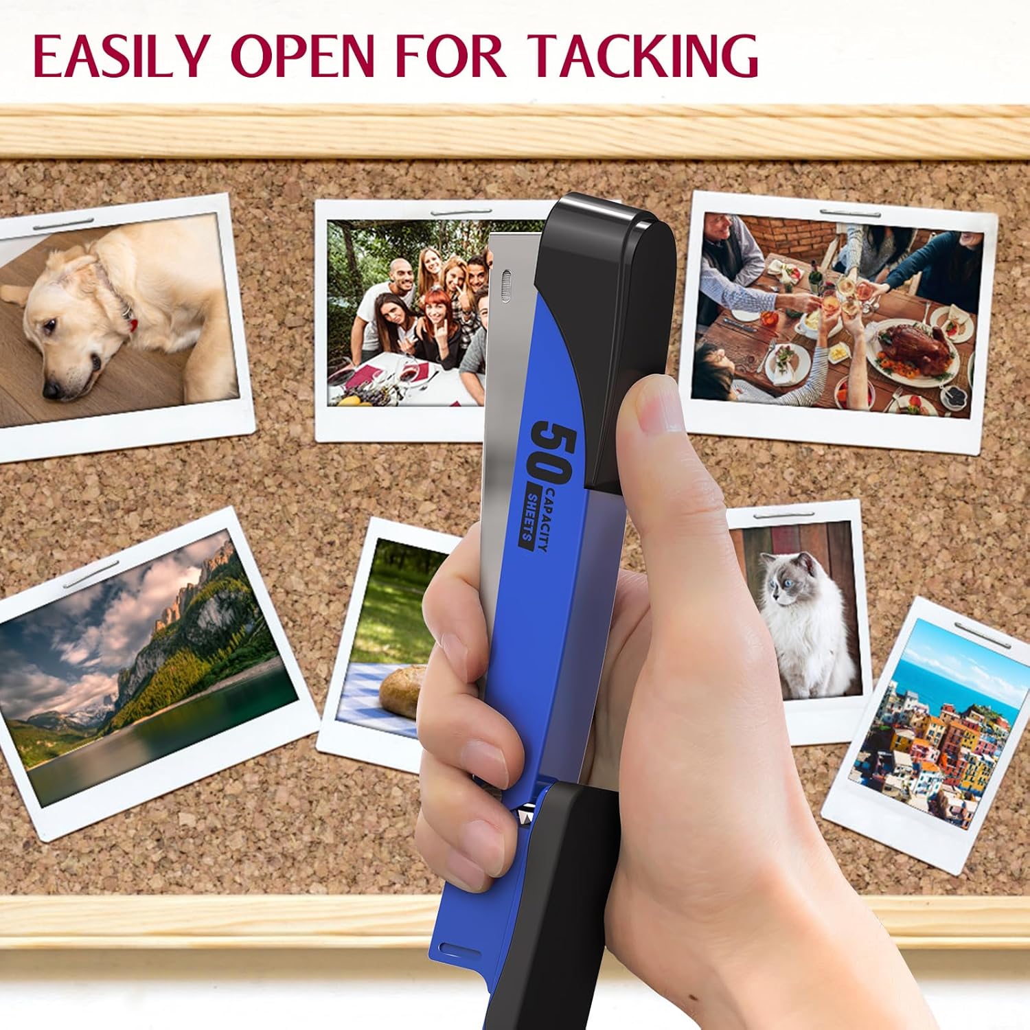 - 【Durable Metal Stapler】: Our blue stapler heavy duty with metal structure ensures high quality no-jam stapling and long term use. It can easily staples up to 50 sheets, a must have staples for desk, office and classroom.
