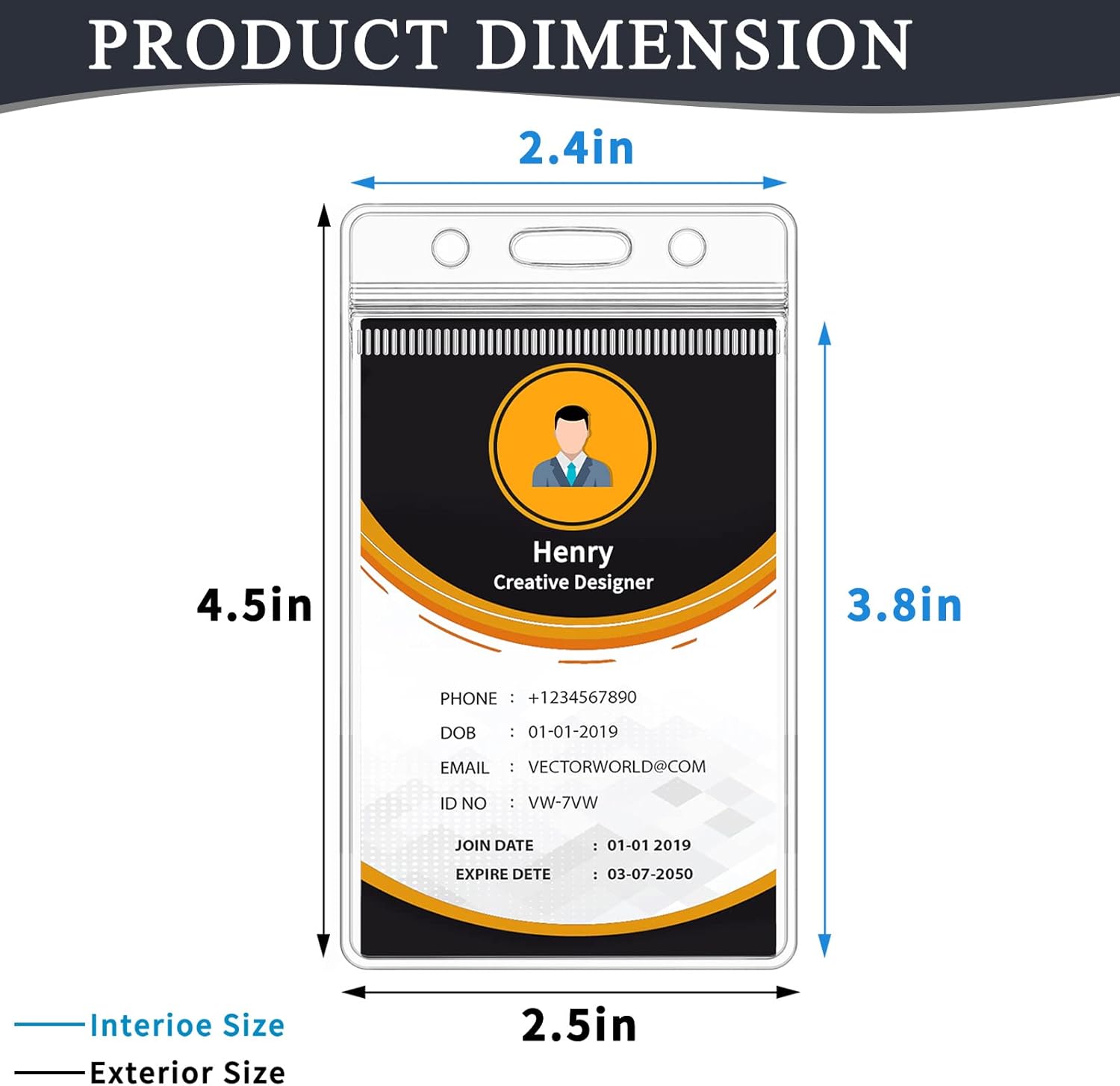 - Practical Size & Vertical Style - The vertical badge holder measures 2.5 x 4.5 inches and is designed to hold cards up to 2.4 x 3.8 inches. 3 Holes pre-punched attach to any style string, lanyard, chain, or retractable clips. Compatible with each 2.25 x 3.5 inches badge insert, and easily holds up to 6 credit cards and seals.
