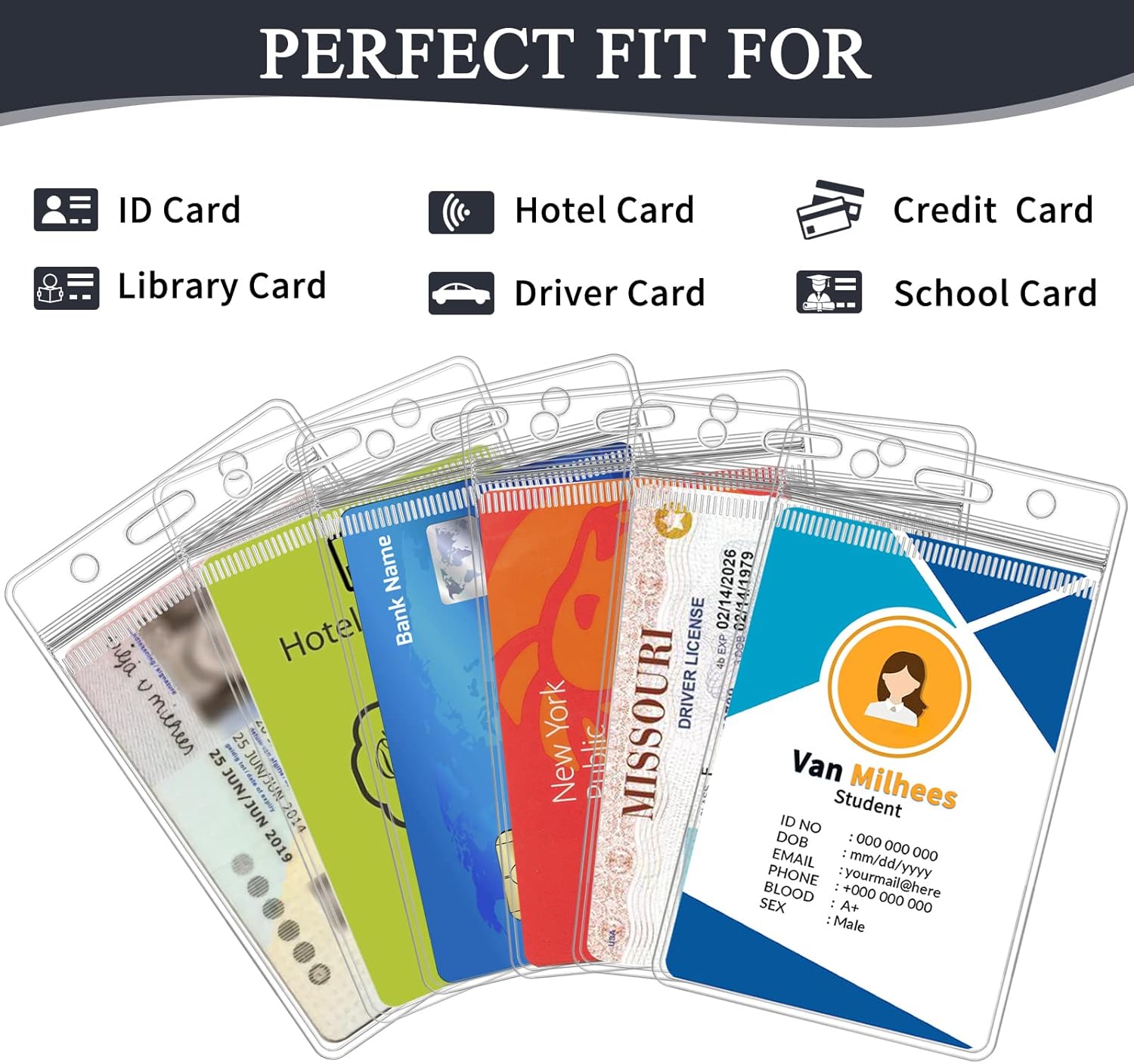 - Waterproof & Dust-proof - Our plastic name tag ID holder is made of quality PVC material, which is durable, not easy to wear, long-lasting, with excellent resealable zipper closure and 2 convex points. Good sealing can effectively prevent water or dust from entering, keeping cards dry and clean. You can safely put your ID card, work card, traffic pass, or credit card in it, and hang other small ornaments to make your name holders more beautiful and stylish.