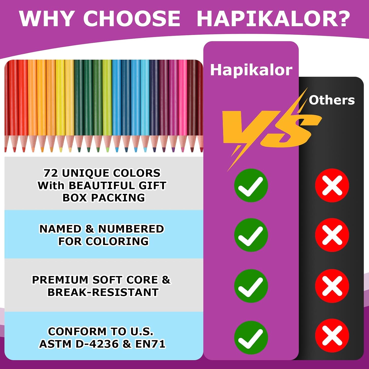 - 【Professional Coloring Pencils Set】72 pack vibrant color pencils in Gift box packed. Each pencil body has a unique number and color name for easy color identification. Our colored pencils help unlock your creative potential, perfect for drawing, sketching, adult coloring book.