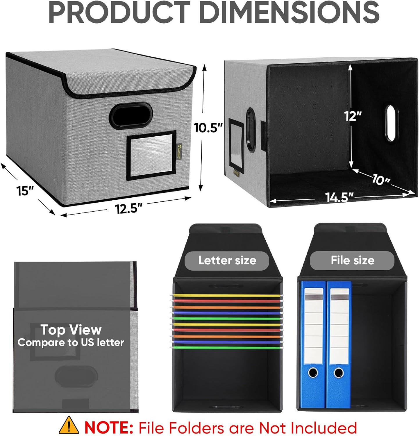 - [OPTIMIZED DESIGN] Designed with convenience in mind, our file storage box helps to elevate your efficiency and organization. The transparent label slot allows for quick identification of the contents stored inside the box. The collapsible design and sturdy handles ensure effortless storage and movement, making it convenient and easy to use.